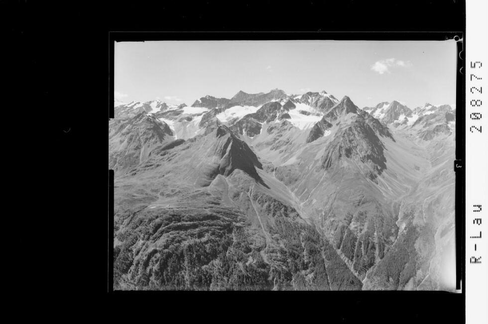 [Blick vom Gamskogel bei Längenfeld in die Ötztaler Alpen / Geigenkamm mit Hoher Geige und Kaunergrat mit Watzespitze]