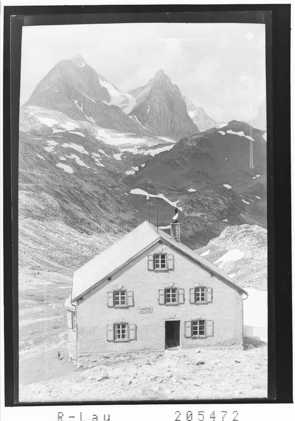 [Leutkircher Hütte gegen Weißschrofenspitze und Fallersteisspitze]