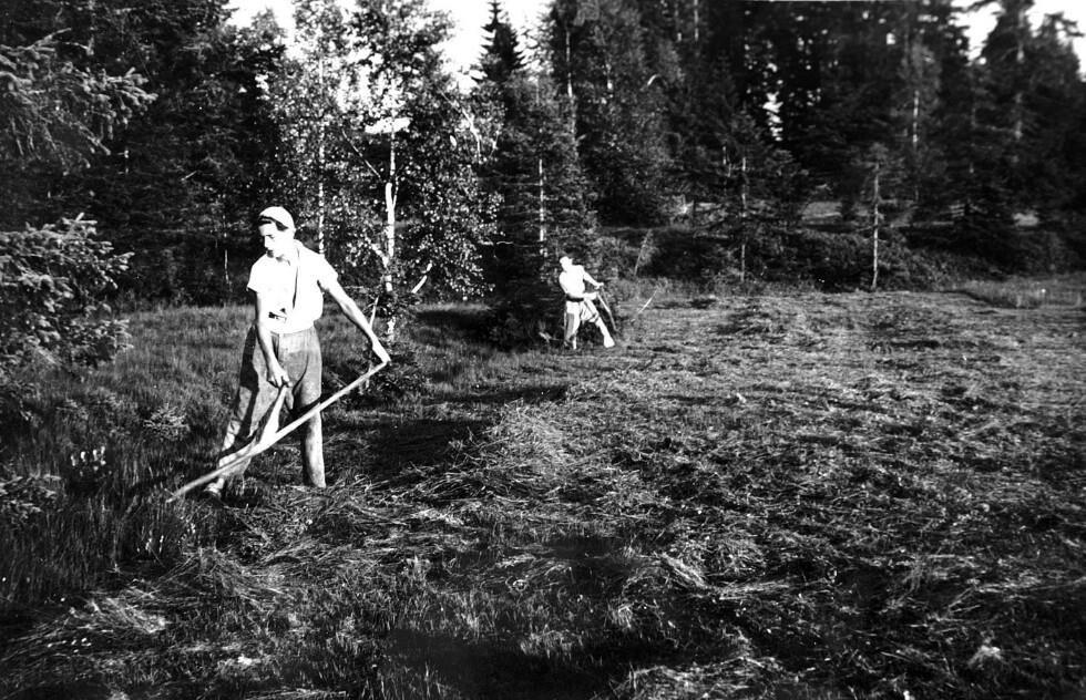 • Im "Ried" auf der Breitentobelalpe; links Metzler, Adolf ("Ipsers Adolf"); rechts Schmidinger, Franz (1927-)