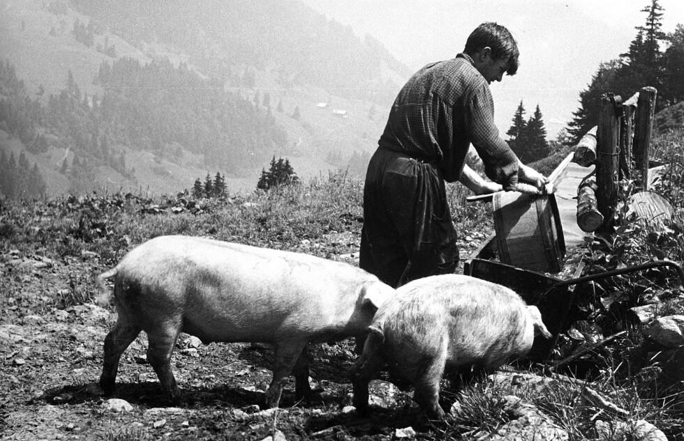 • Beim Brunnen der Alpe Ulfern Manser Anton (1933-1994); im Hintergrund das Vorsäß Vorder-Sifratshütten