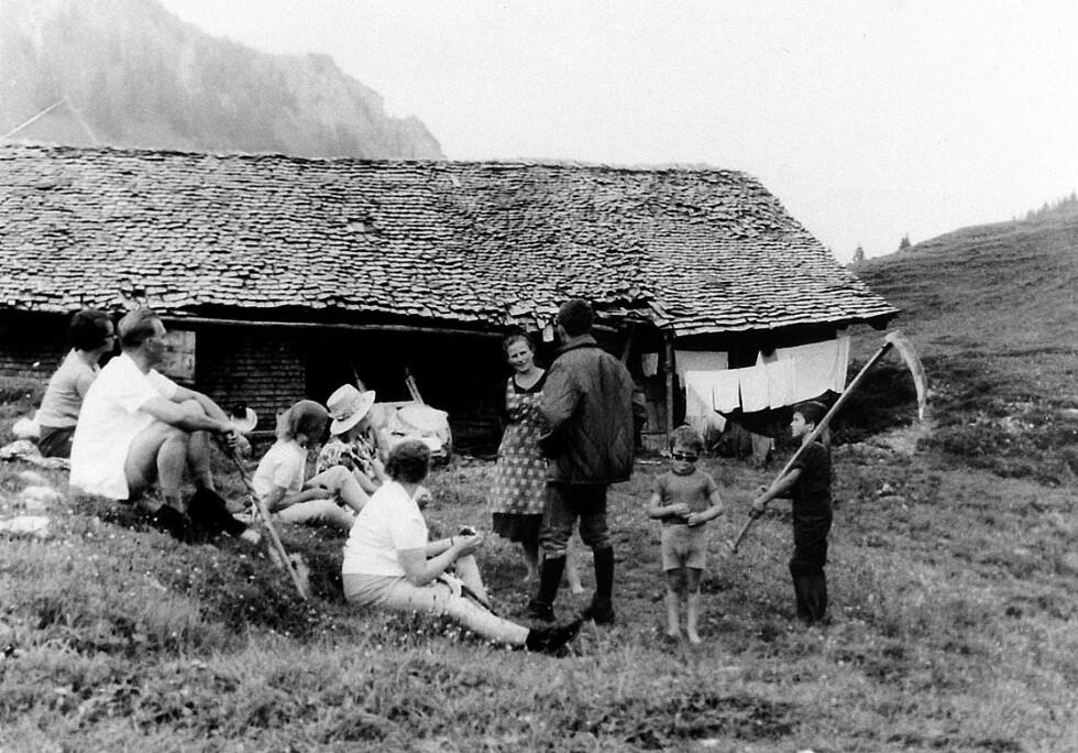 • V. re.: Geiger Werner (1957-); Geiger Wolfgang (1962-); mit Schürze Geiger Maria (1928-, geb. Kohler); alle anderen Leute sind Gäste