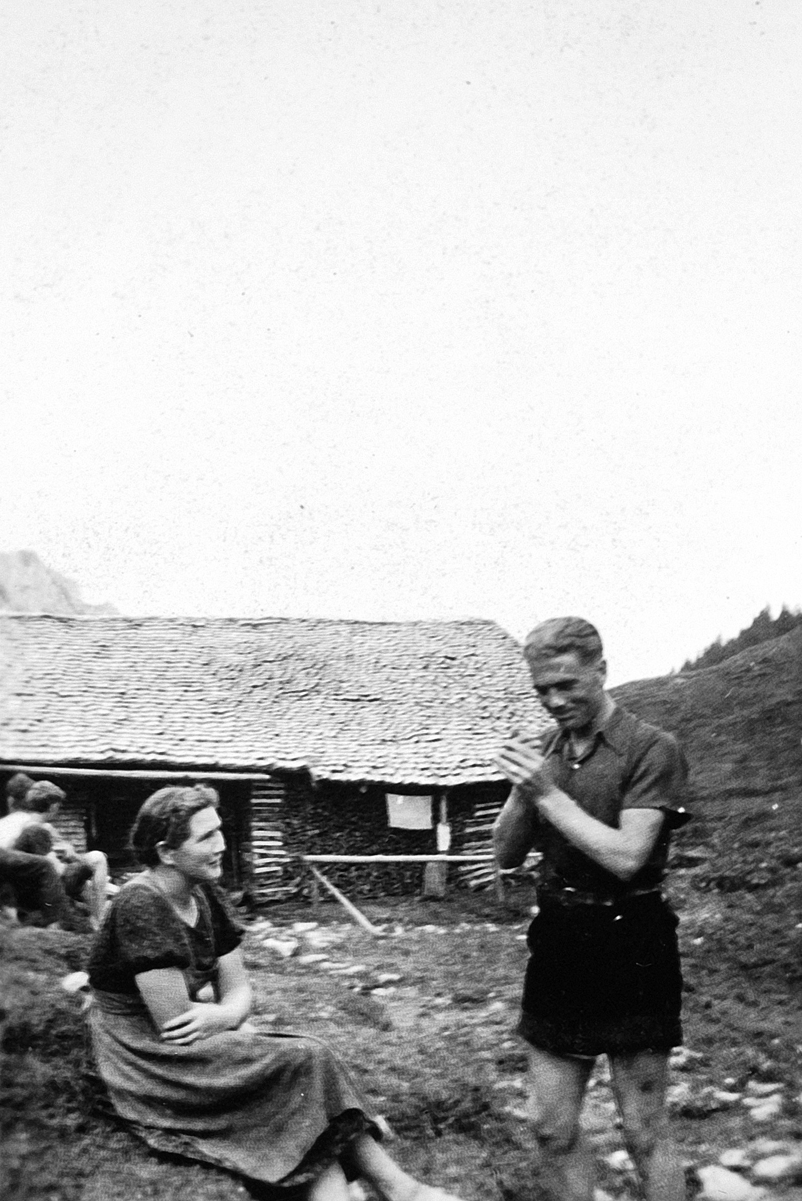 • Sitzend Fröwis Maria (1918-2001); Mann unbekannt