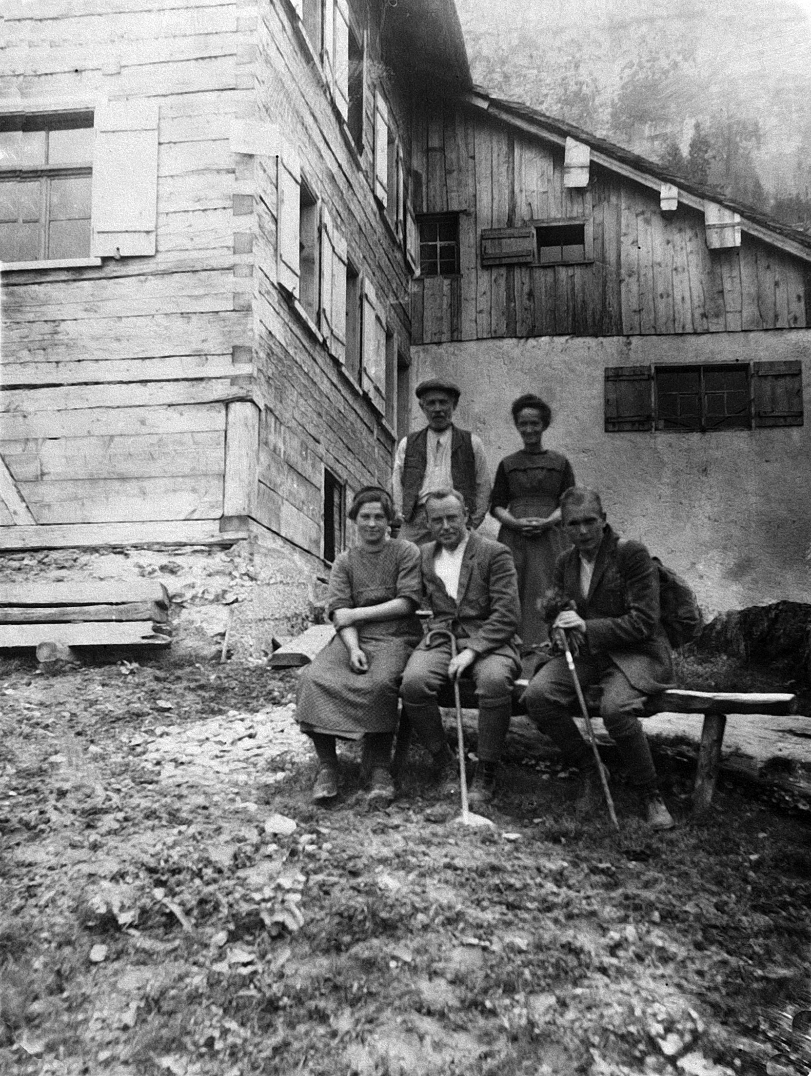 • V. li. hinten: Muxel Anton (1862-1940, "s'Tunele"); Matt Eleonora; vorne li.: Muxel Maria (1903-); zweimal unbekannt