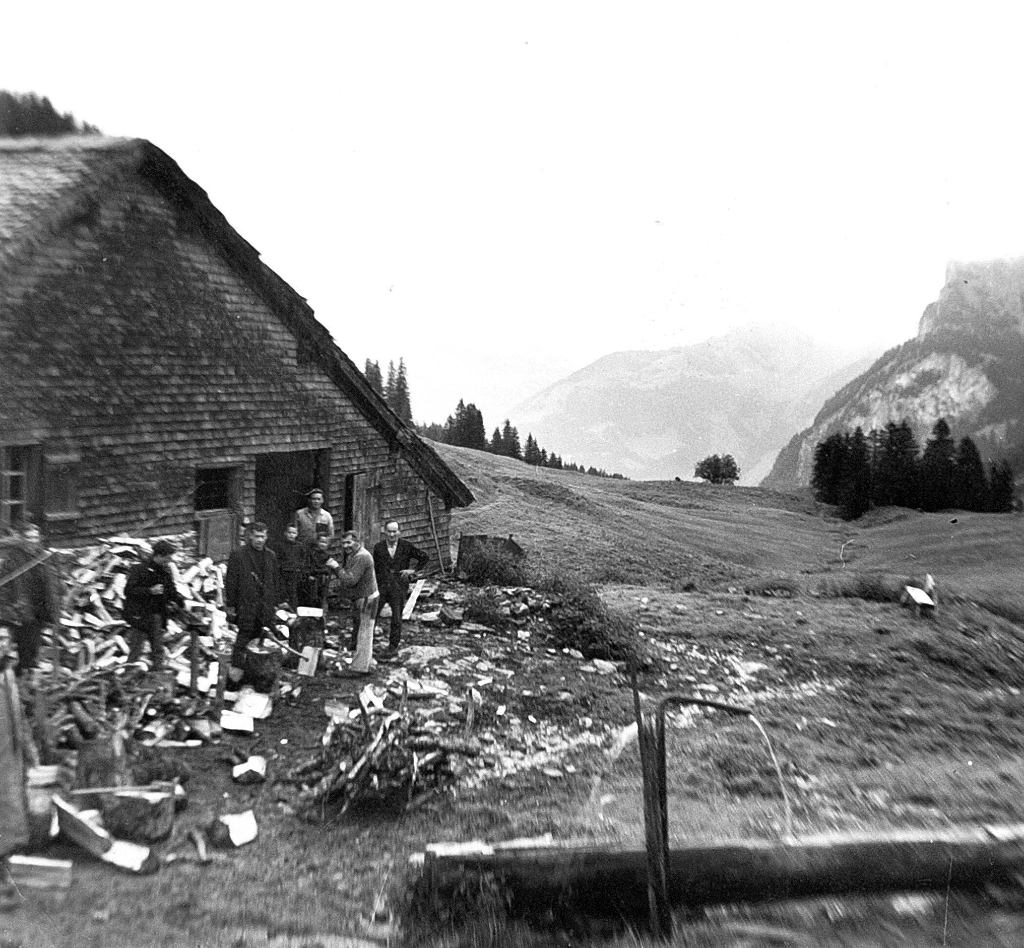 • Davor Besuch aus Bezau von der Familie Meusburger Josef (GH Sonne) mit Freunden; rechts die Kanisfluh