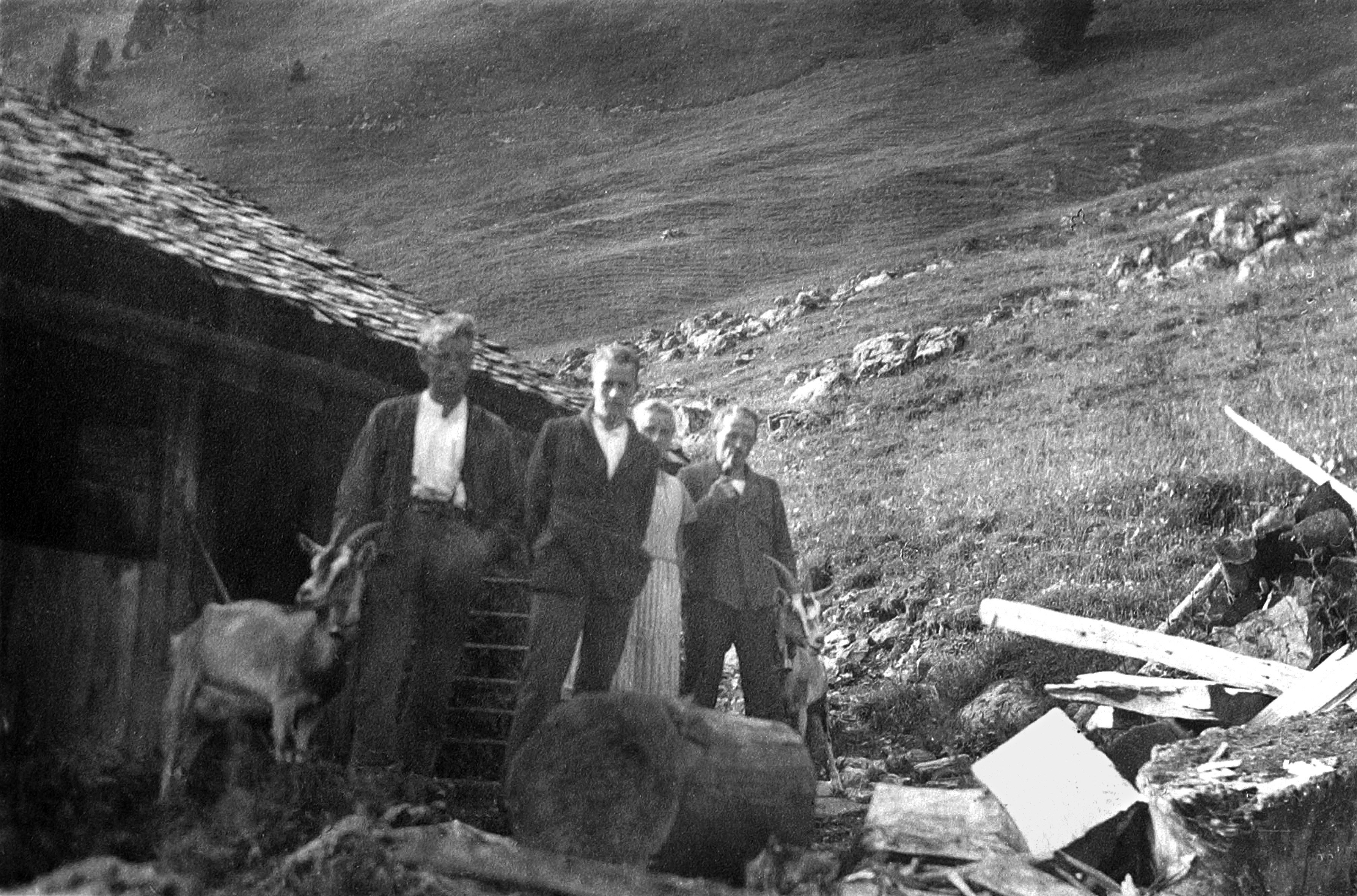 • Personen vor der Hütte Metzler Elisabeth sind unbekannt