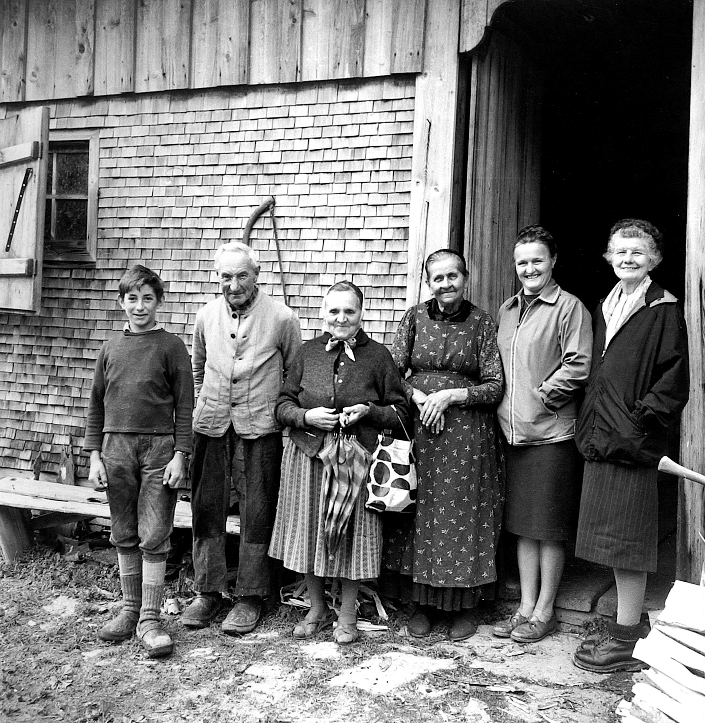• V. li.: Rüf Alois (1952-); Moosbrugger Hermann (1889-1972); Klauser Elisabeth; Walch Rosa (1886-1971); Natter Paula (1926-); Feriengast aus Berlin