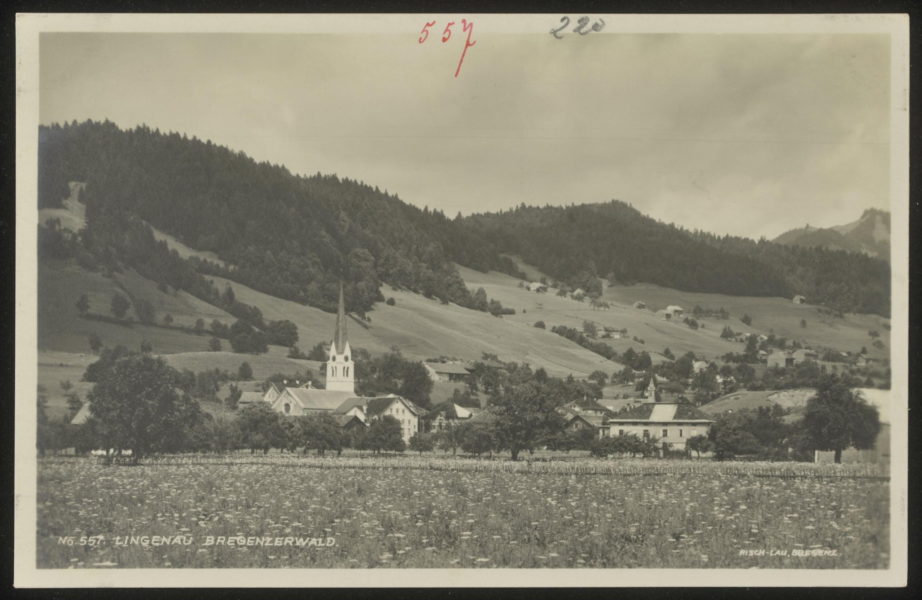 Gruss aus Lingenau im Bregenzerwald. 750 m : [Correspondenz-Karte]
