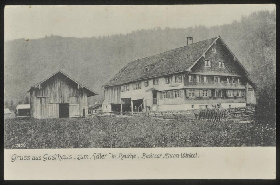 Gruss aus Gasthaus "zum Adler" in Reuthe, Besitzer Anton Winkel