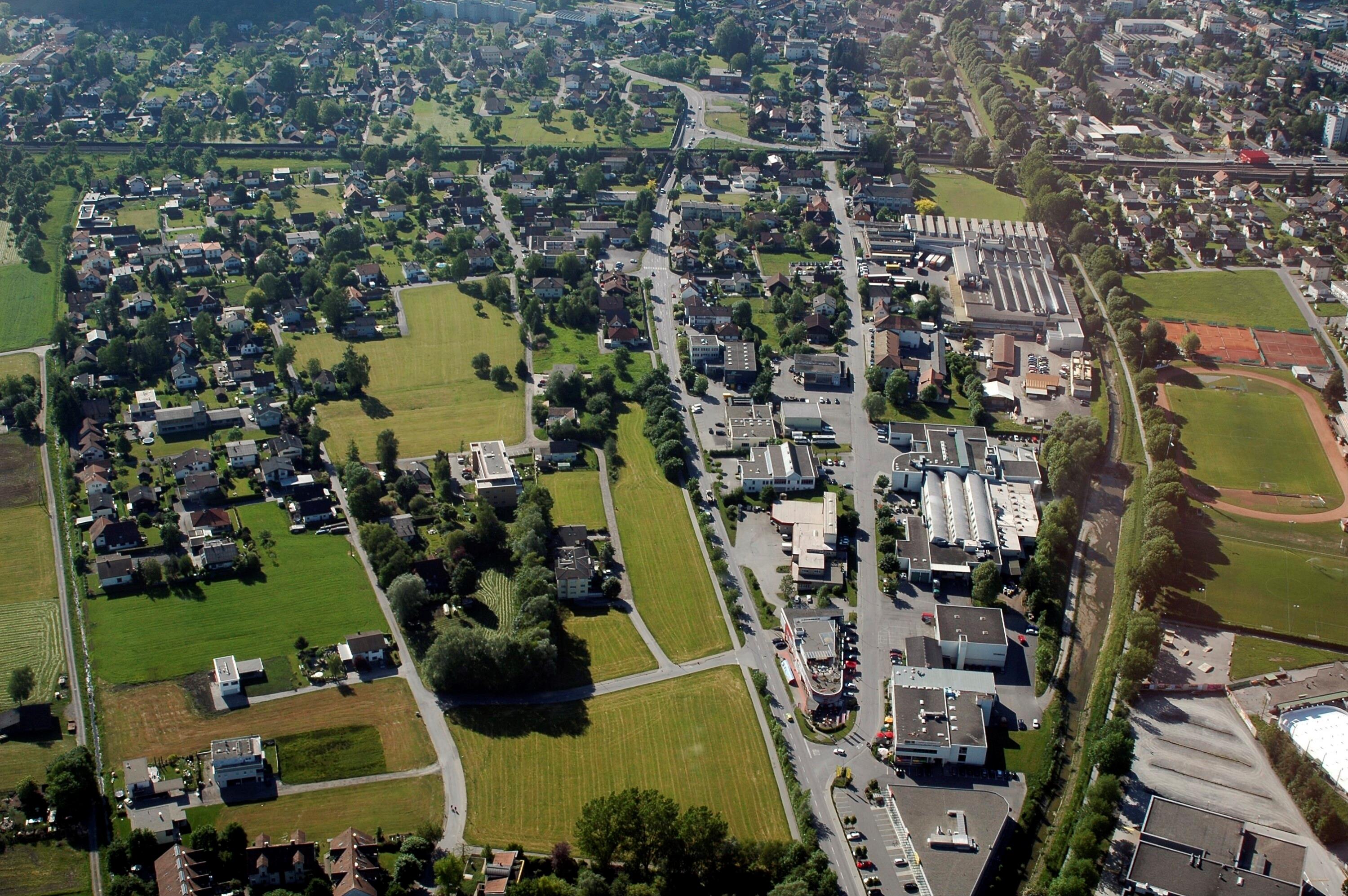 [Hohenems - Herrenried, Fußballplatz, Tennisplatz, Wohnanlagen]