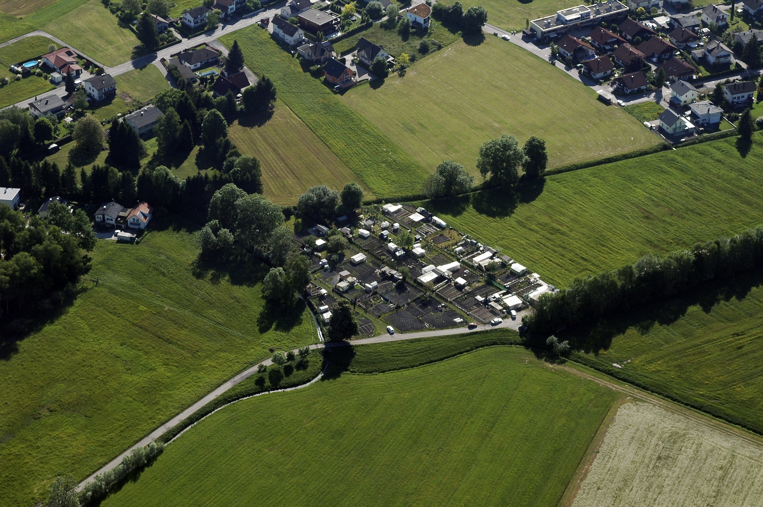 [Hohenems - Schwefel, Hohenemser Ache, Blick Otten Areal, Schrebergarten Altach]