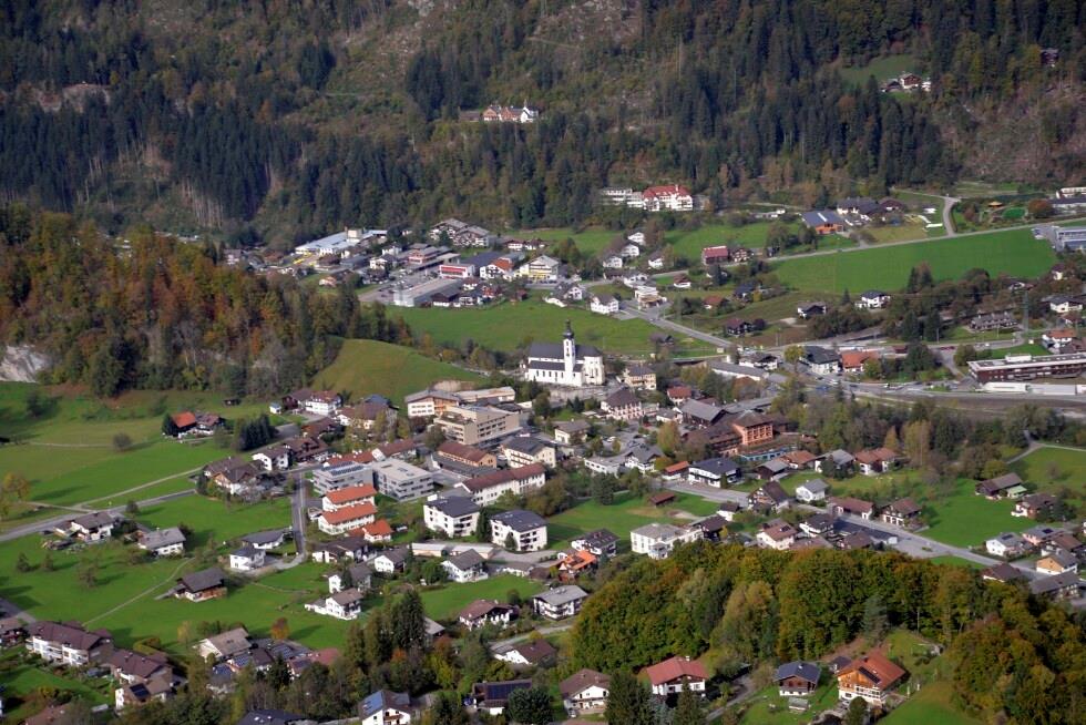 [Tschagguns - Zentrum, Kirche St. Maria Geburt u. St. Ulrich, Hotel Montafoner Hof, Gemeindeamt, Blick Schruns, Kloster Gauenstein]