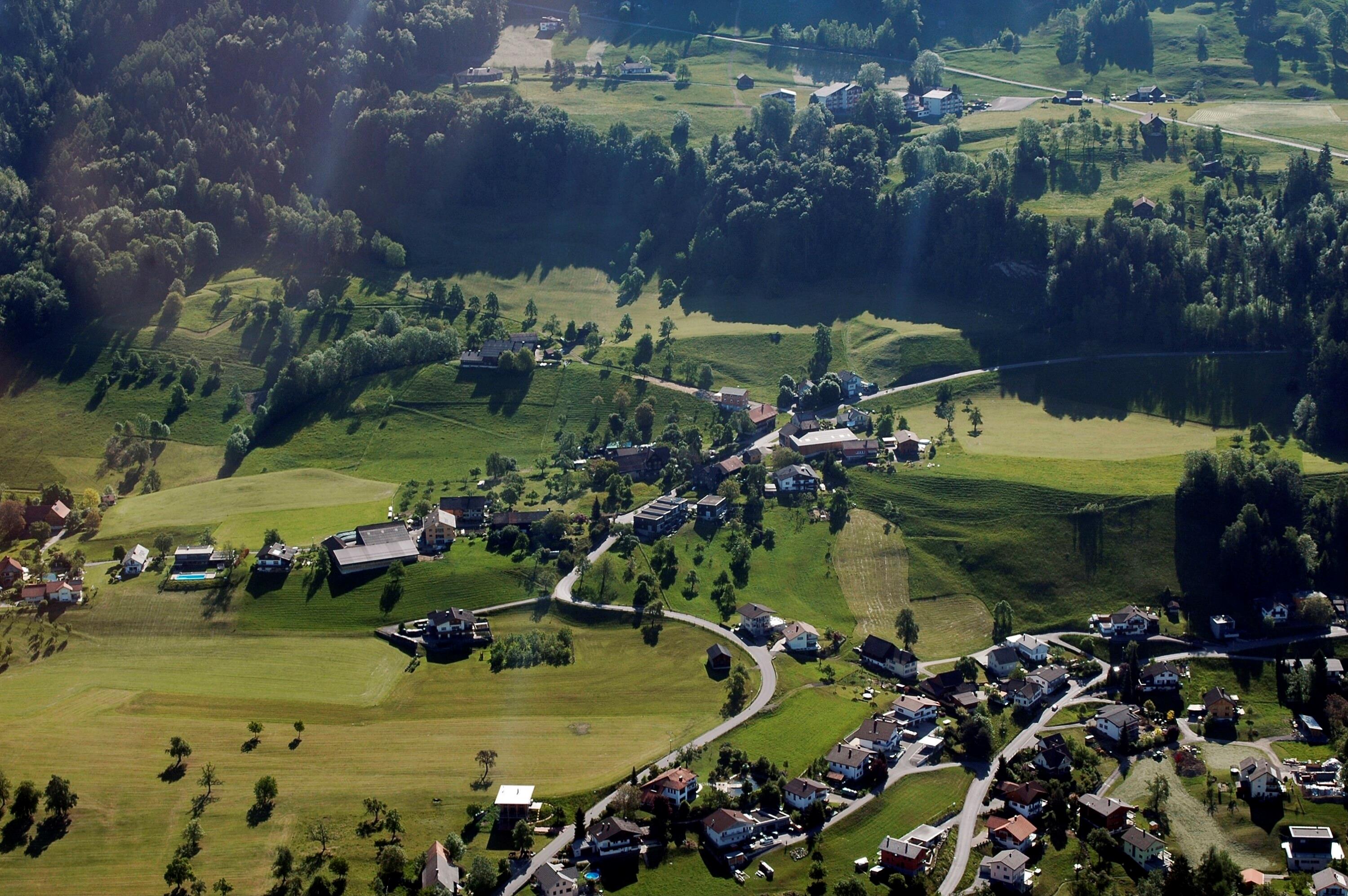 Schrägluftaufnahmen von Gebäuden der Gemeinde Zwischenwasser, Batschuns