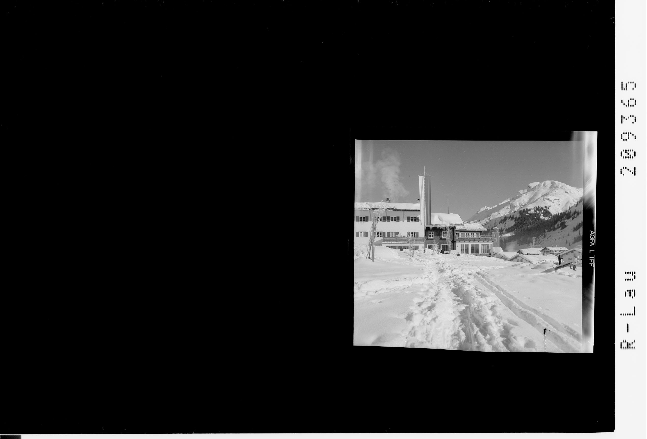[Hotel Schneider in Lech am Arlberg gegen Wöster Horn]