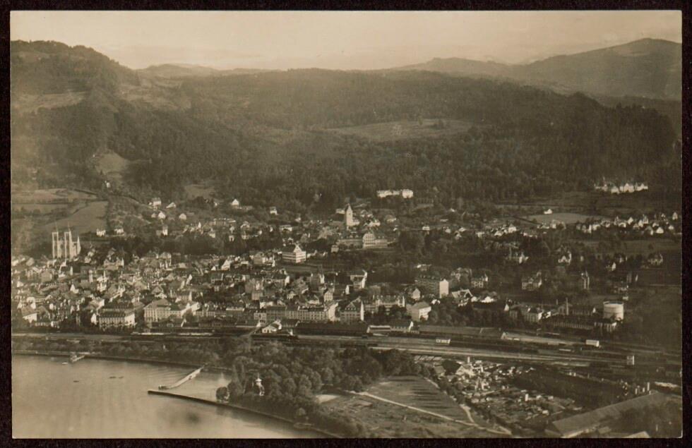 Bregenz a. B. mit Pfänder 1060 m vom Flugzeug aus