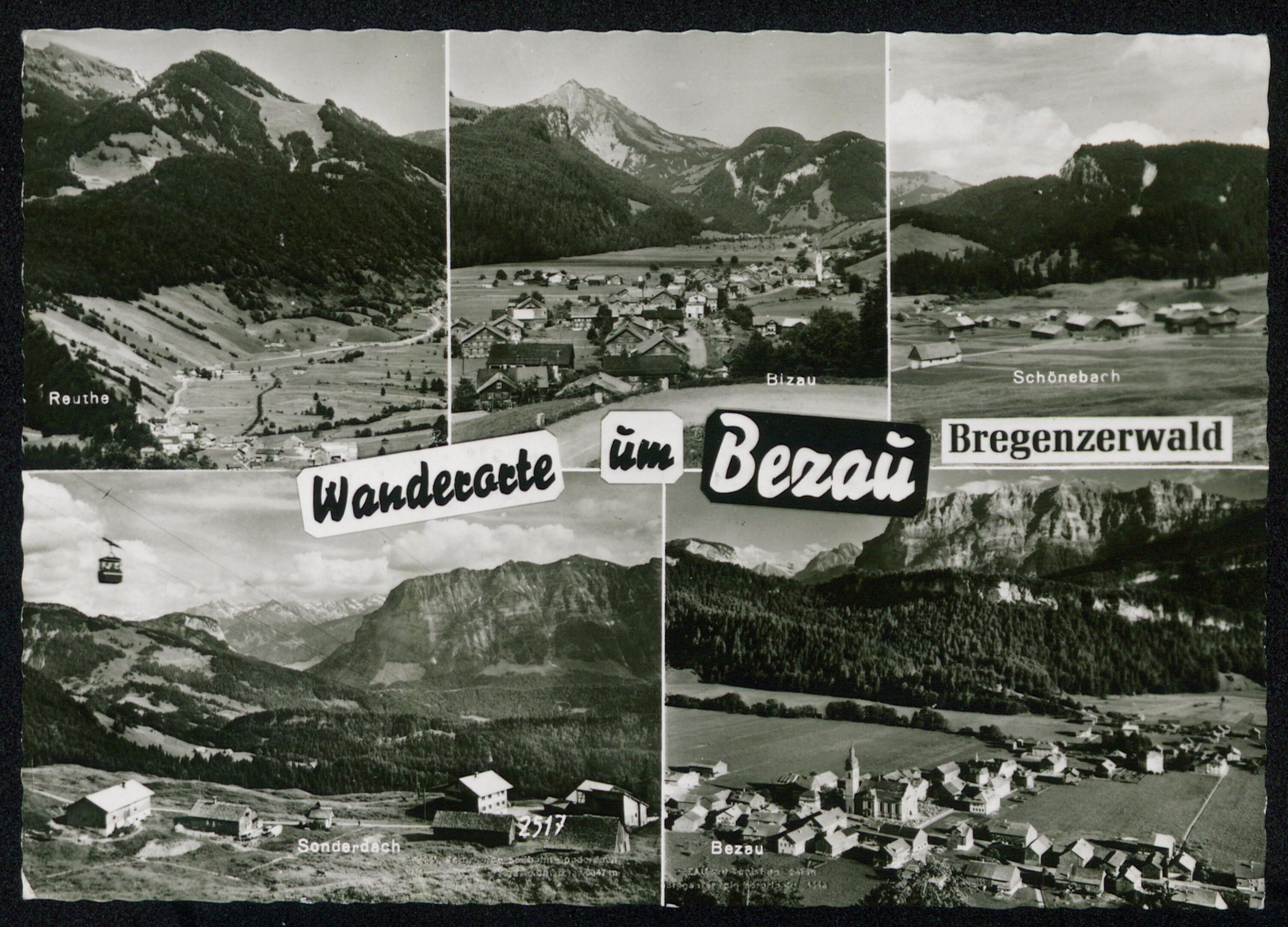 [Bezau] : Trachten : Seilbahn : Bezau mit Winderstaude : Bezau Breg. Wald mit Kanisfluh