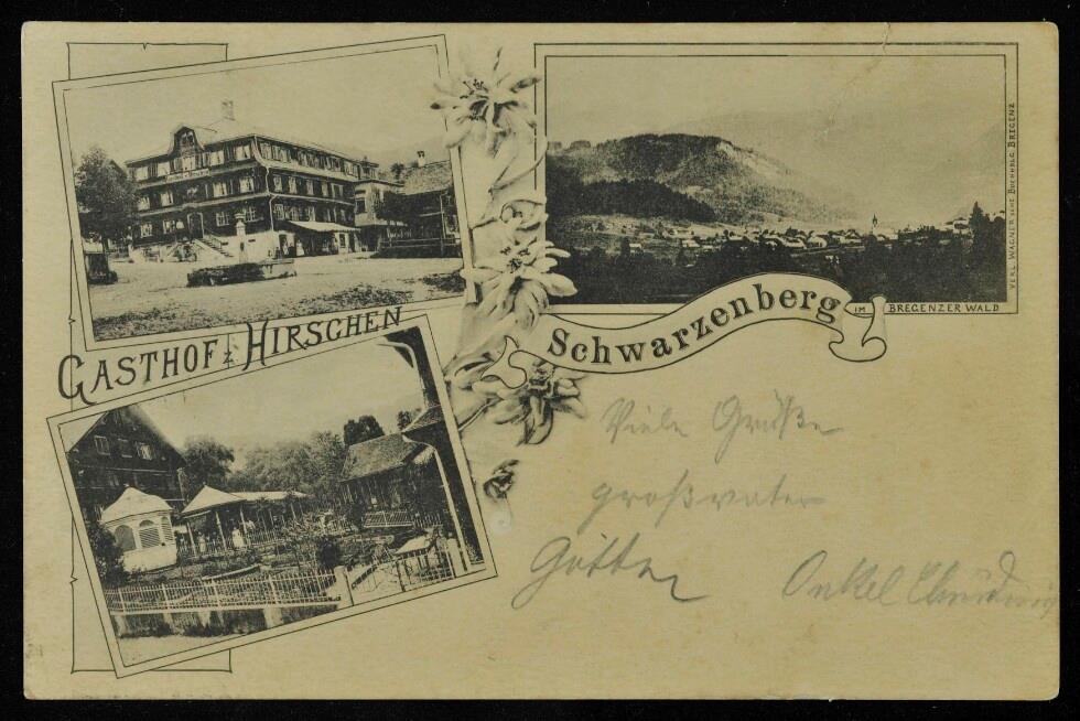 Gasthof z. Hirschen Schwarzenberg : Im Bregenzer Wald : [Correspondenz