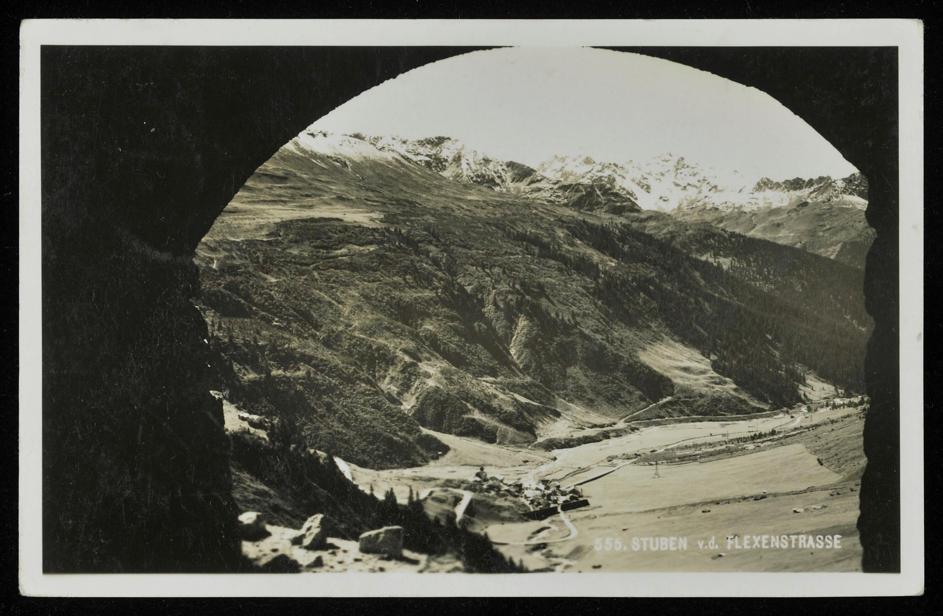 [Klösterle] Stuben mit Flexen- und Arlbergstrasse : Drittkopf 2722 m. : [Correspondenz-Karte ...]