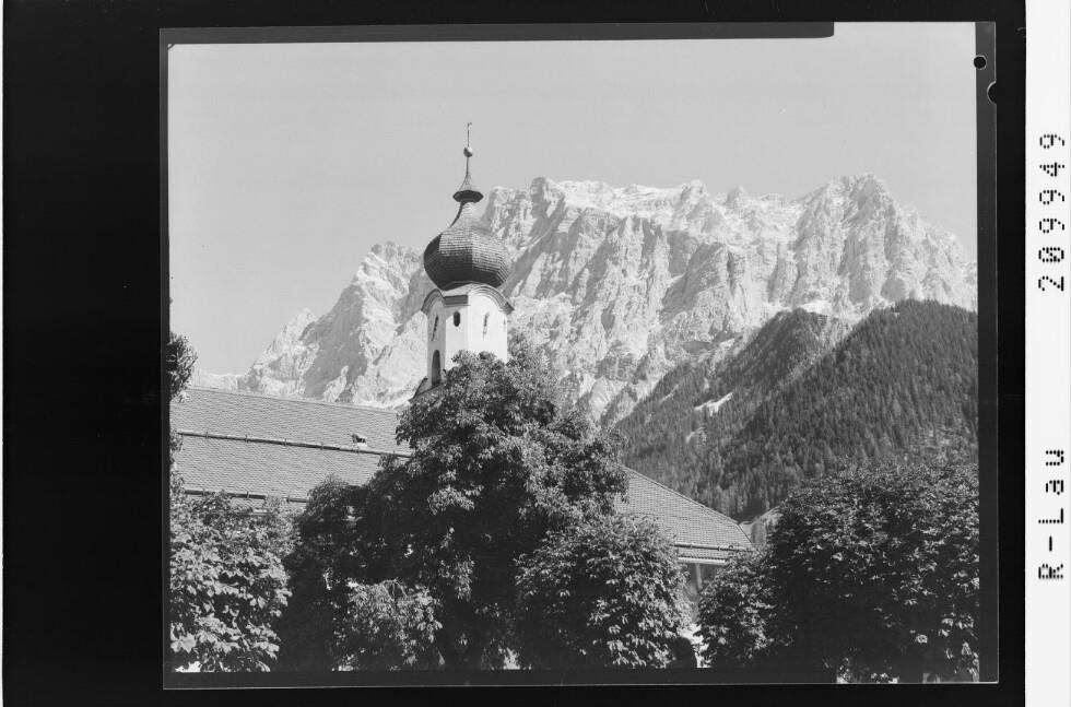 [Ehrwald in Tirol / Pfarrkirche gegen Wetterstein Gebirge]