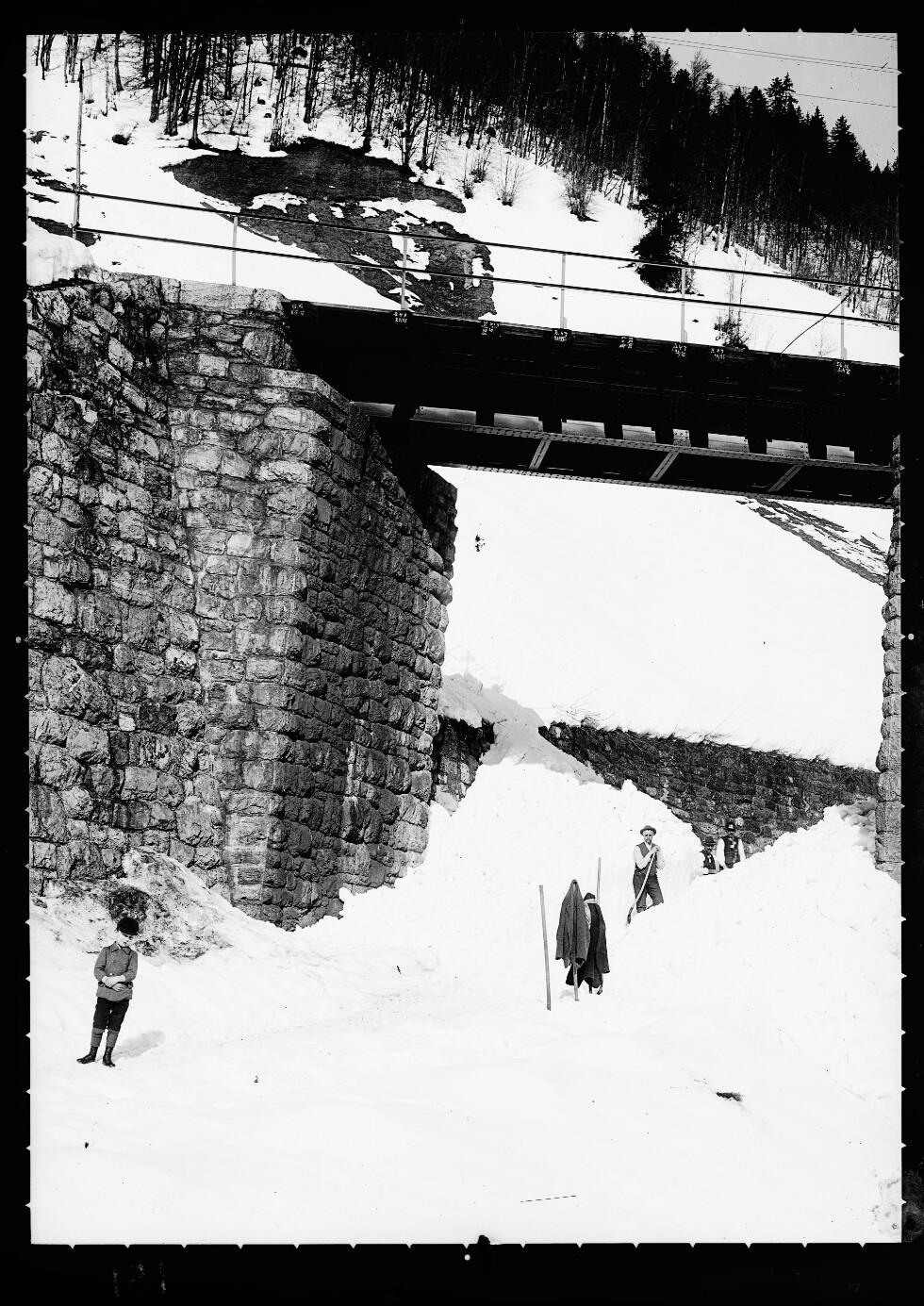[Aufnahme von der alten Eisenbahnbrücke über die Bundesstraße in Langen am Arlberg]
