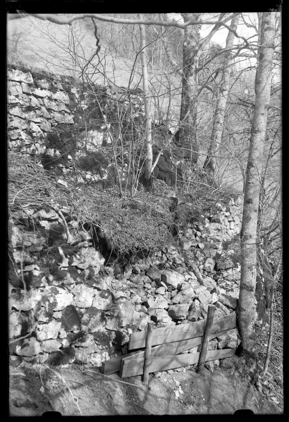 [Überreste einer Trockenmauer im Steilhang]