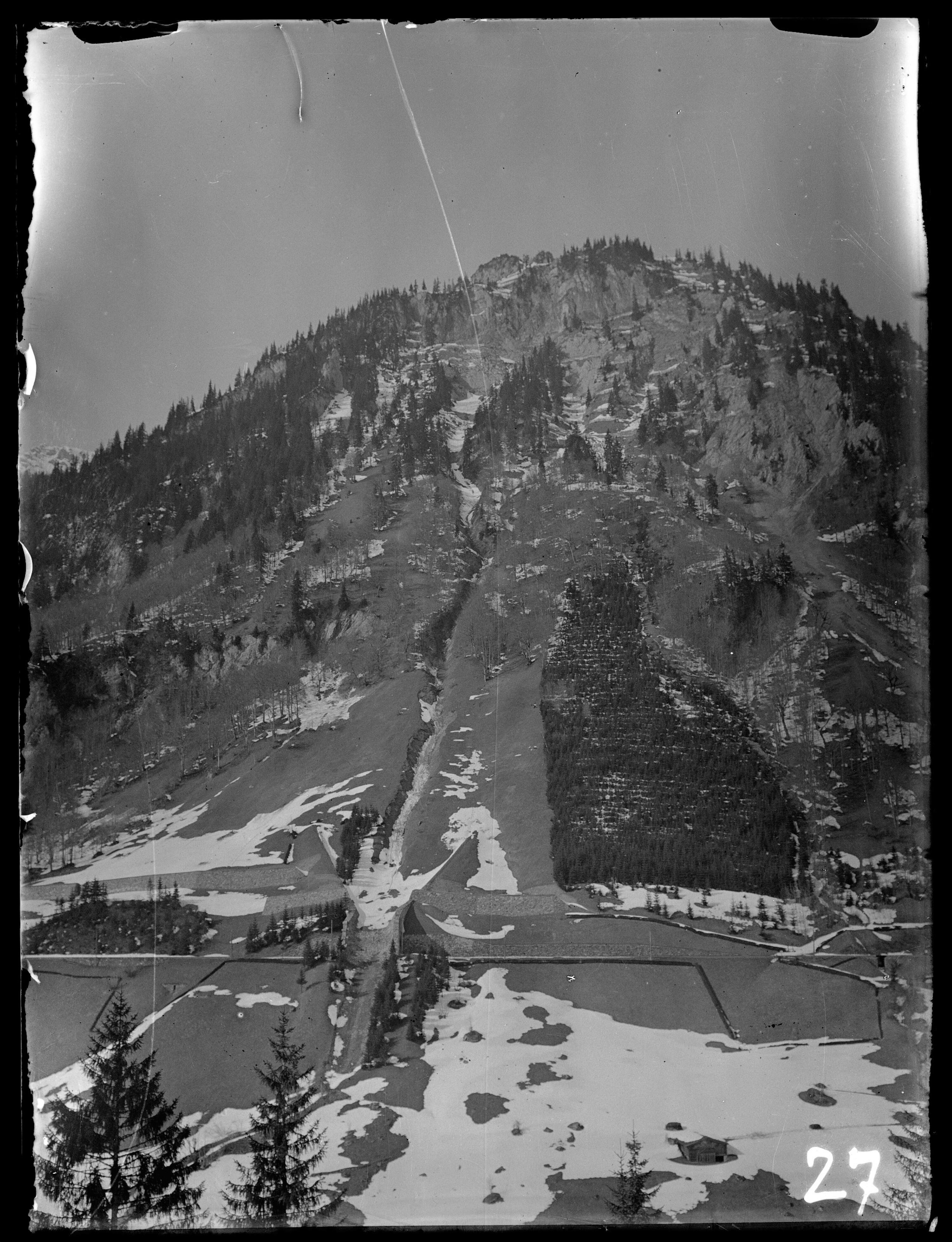 [Aufnahme des Wildentobel-Aquädukts zwischen Hst Klösterle und Wald am Arlberg im km 114,6 mit Blick auf den Batzigg (1833 m)]