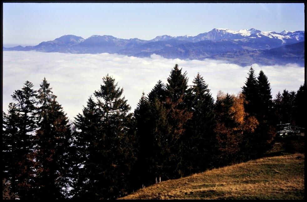 [Frastanz, Blick von Amerlugalpe auf Rheintalnebel]