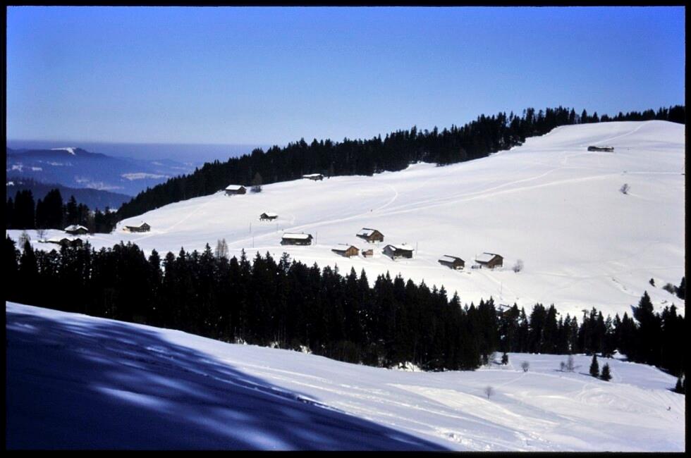 Aufstieg zur Abfahrt vom Gaiskopf : [Alpenhôtel Bödele, 1140 m ü. M. auf der Passhöhe Dornbirn-Schwarzenberg]