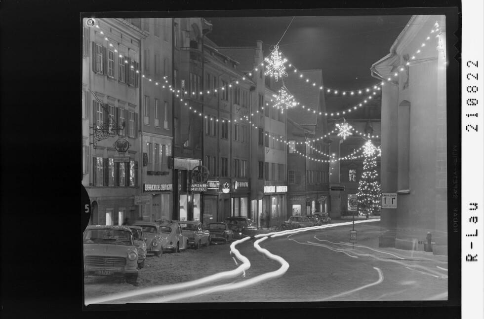 [Rathausstrasse mit Weihnachtsbeleuchtung in Bregenz]