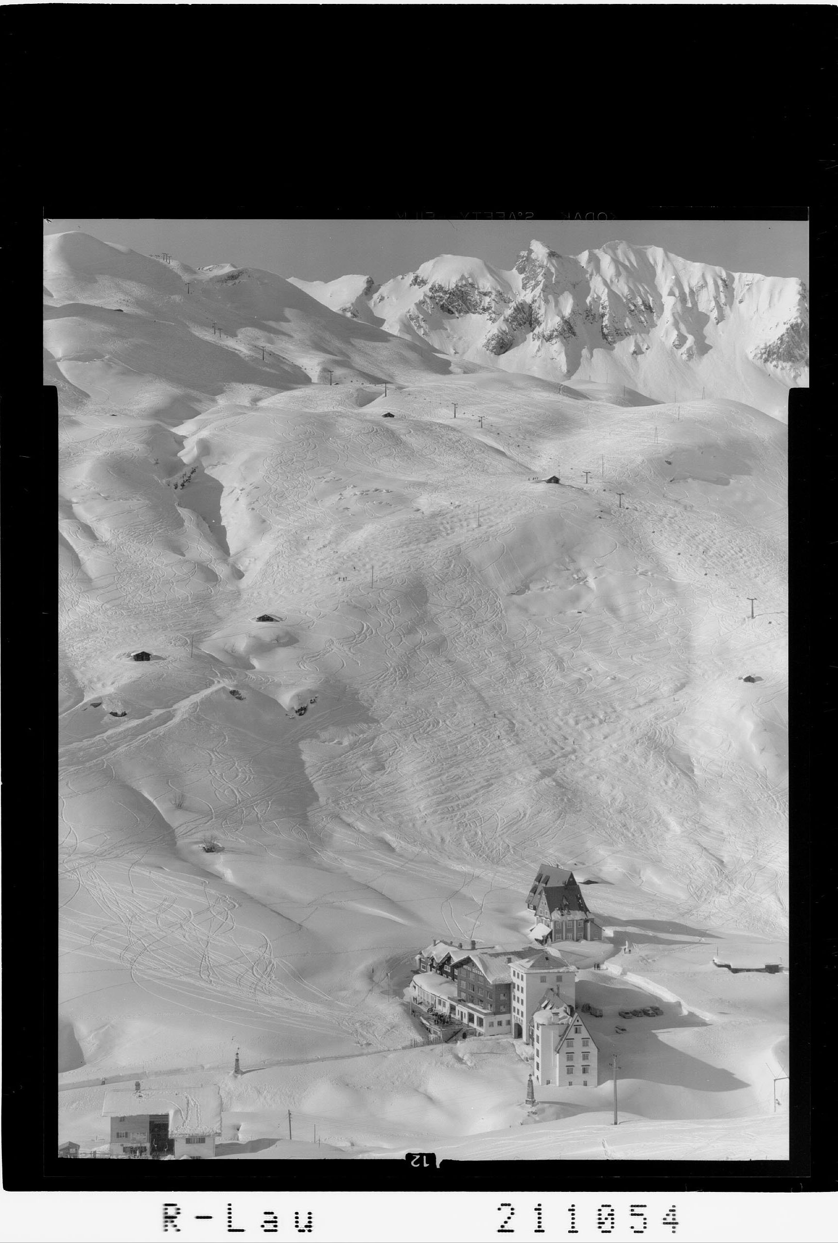 [Hotel Zürserhof bei Zürs am Arlberg mit Mittagspitze und Omeshorn]
