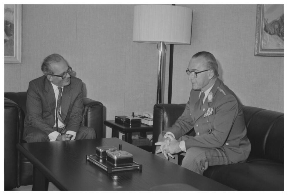 Bundespräsident Rudolf Kirchschläger wird durch eine Ausstellung geführt