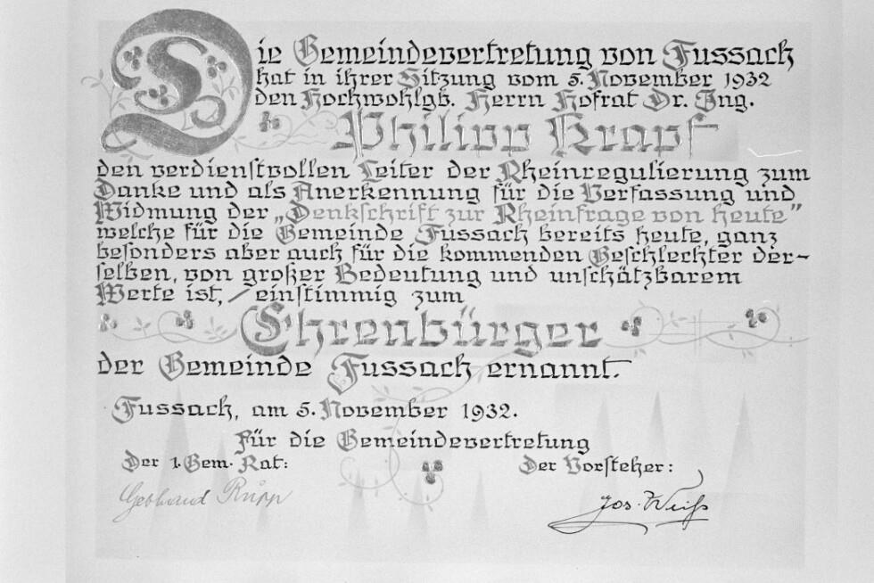 Phillip Krapf, Ehrenbürger-Urkunden von Fußach und Lustenau