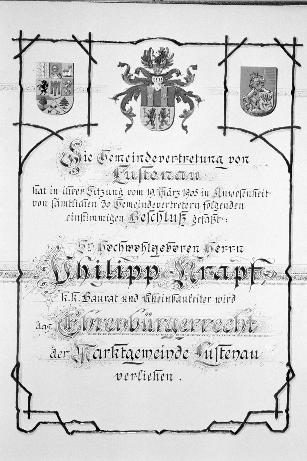 Phillip Krapf, Ehrenbürger-Urkunden von Fußach und Lustenau