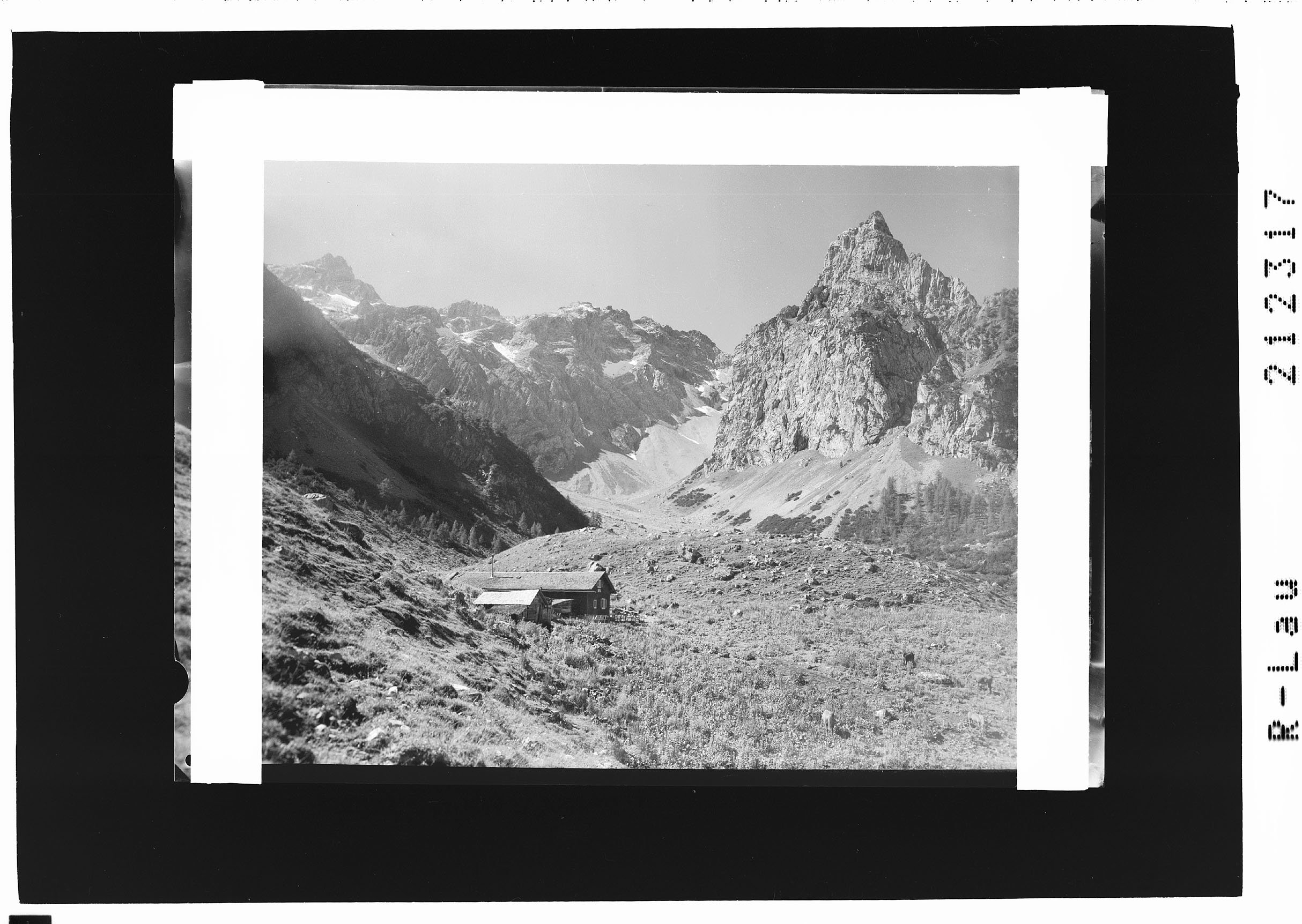 Sarotlahütte 1660 m des Ö.A.V. Brandnertal Vorarlberg gegen Brandner Mittagspitze 2563 m und Sarotlahörner 2192 m