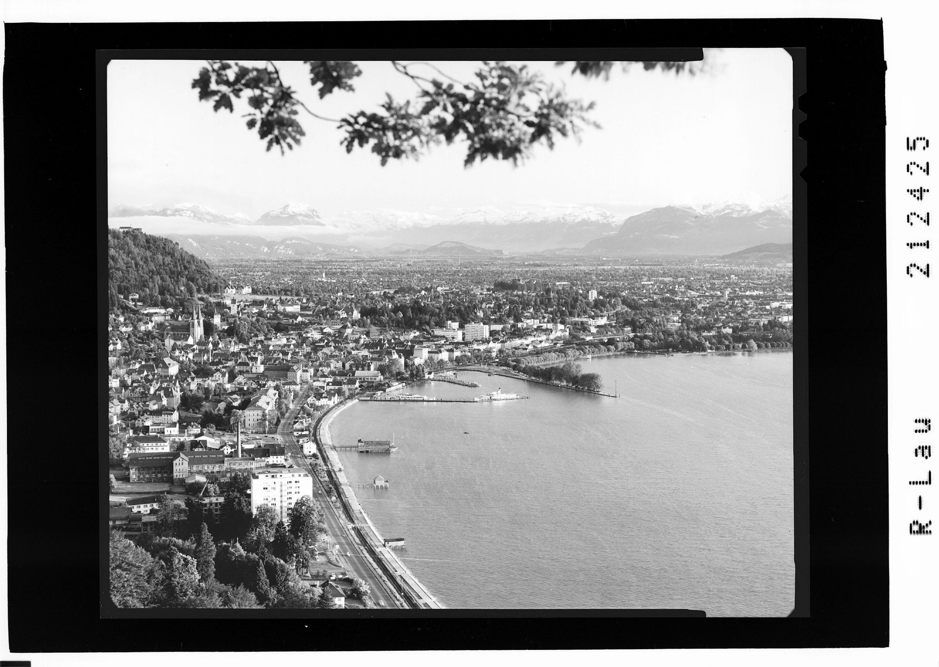 Bregenz am Bodensee gegen Rheintal und Schweizer Berge
