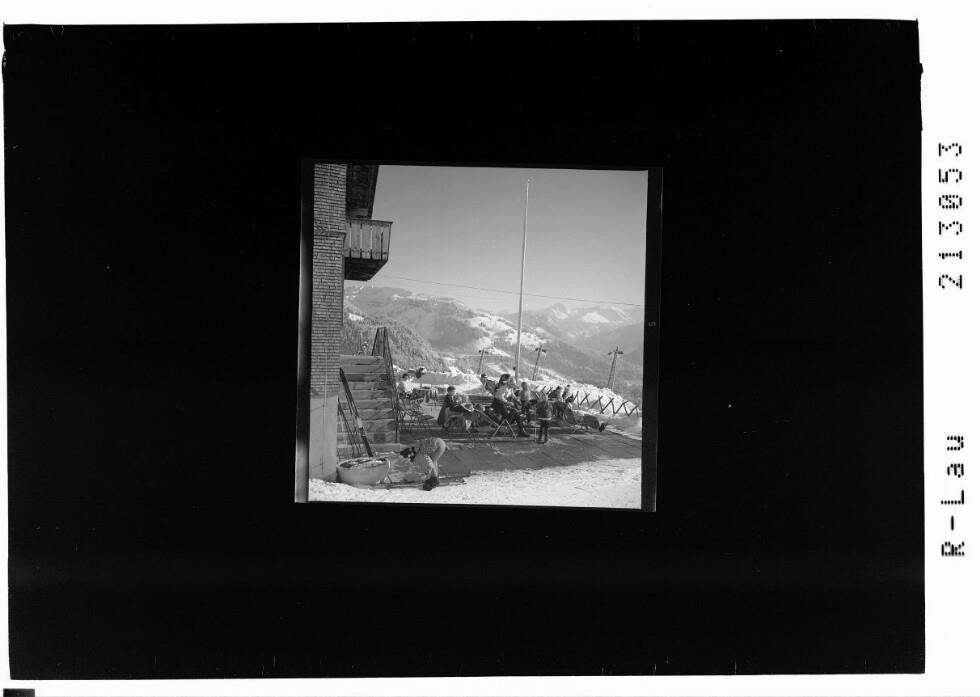 [Terrasse beim Gasthof Sonderdach ob Bezau mit Blick zum Hirschberg und zur Künzelspitze]
