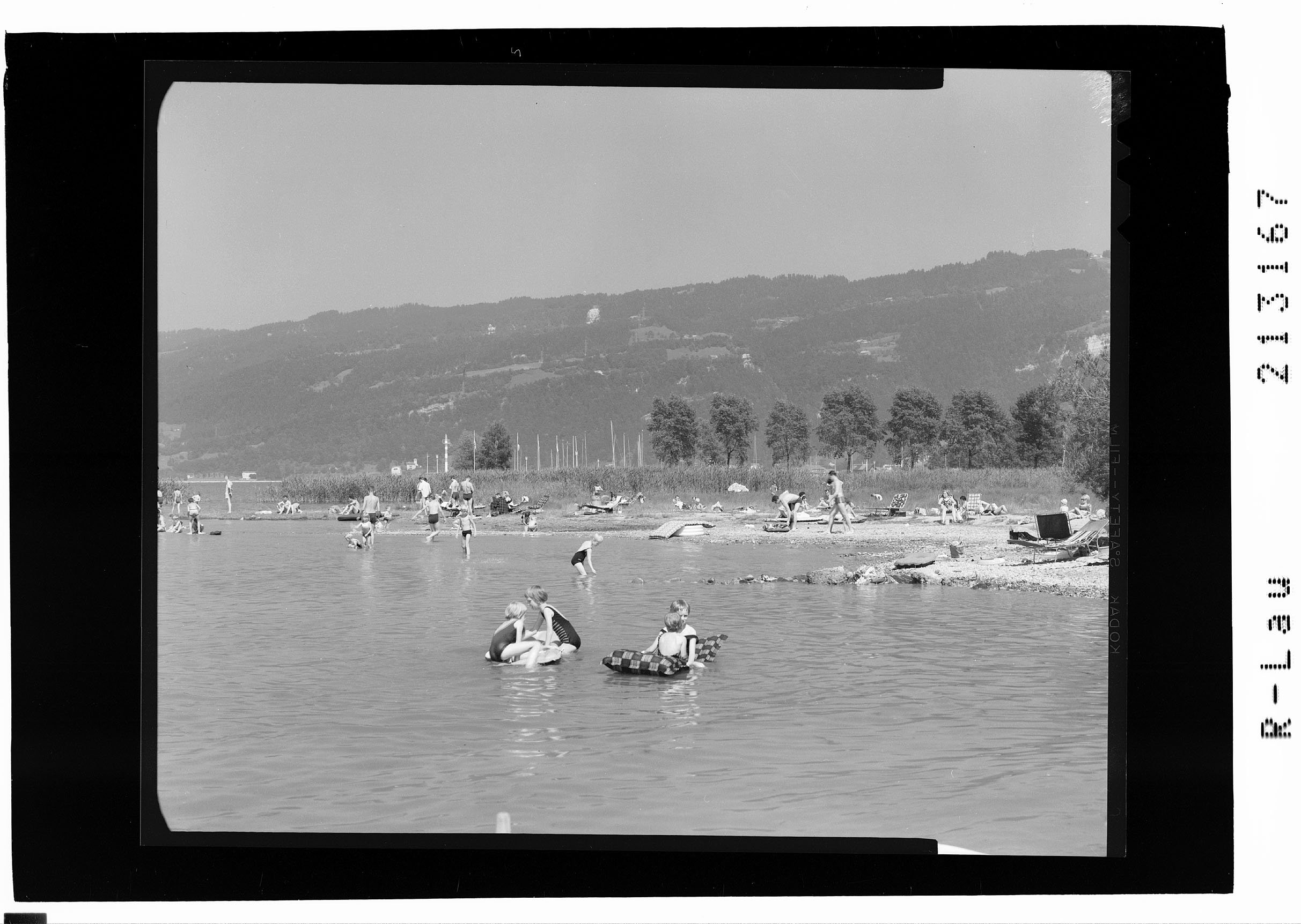 [Bregenz - Badestrand beim Kloster Mehrerau mit Blick zum Pfänder]