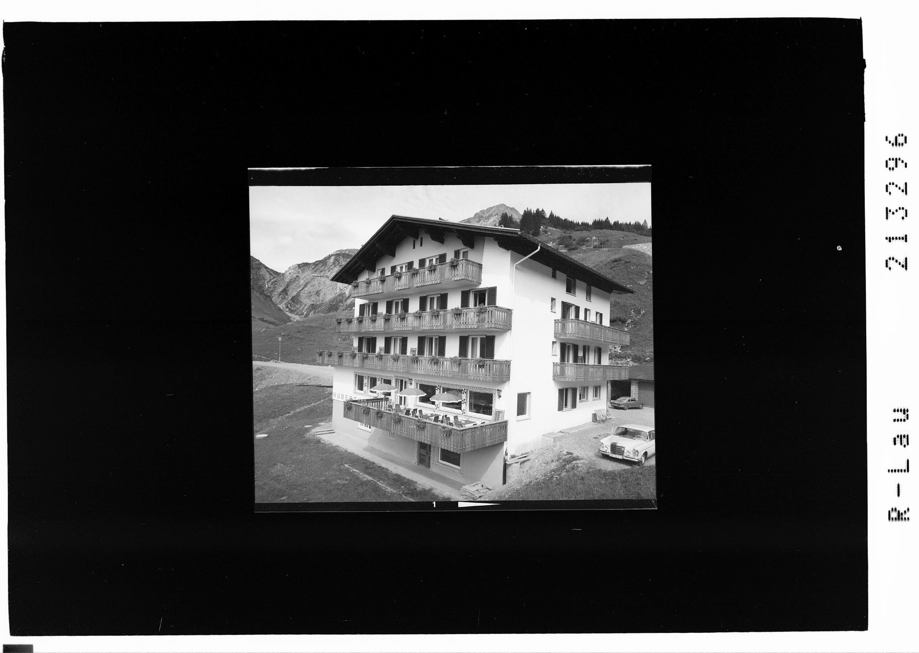 [Hotel Hubertushof in Stuben am Arlberg mit Flexenpass und Ochsenbodenkopf]