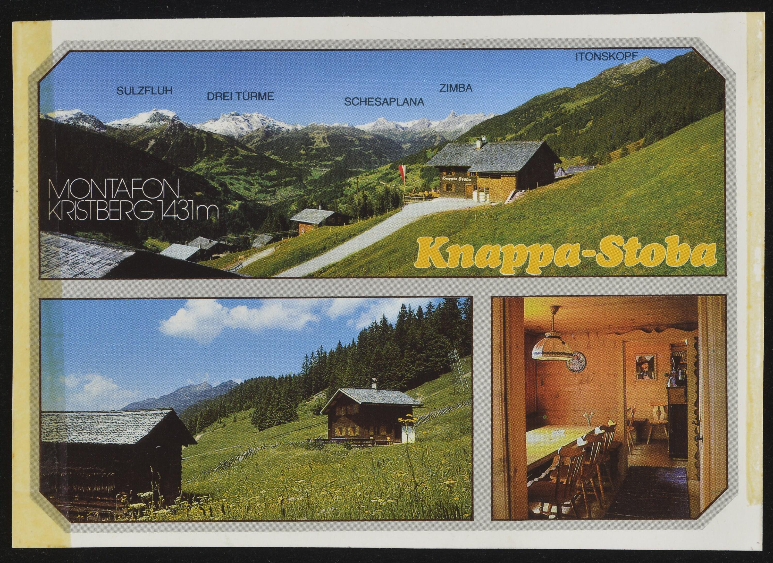 [Silbertal Kristberg] : [Berggasthaus "Knappa-Stoba" am Kristberg, 1450 m A-6780 Silbertal im Montafon Tel. 0 55 56/24 80 Vorarlberg, Österreich ...]