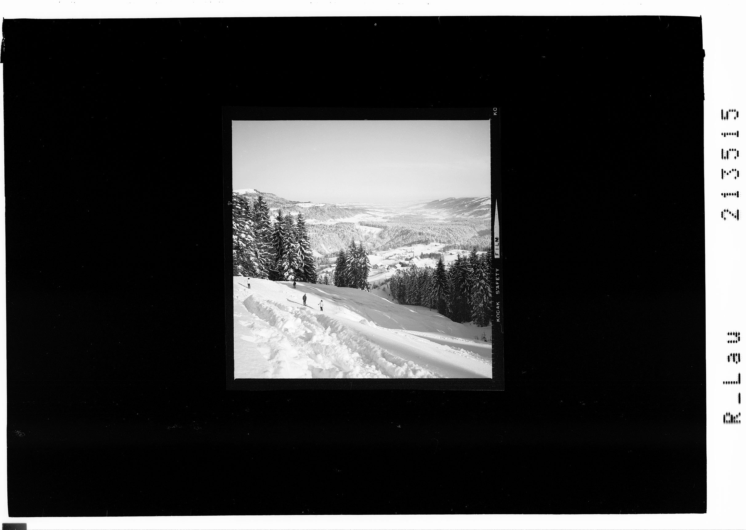 1 Zelluloid (Negativ), schwarz-weiß, quadratisch, 6 x 6 cm