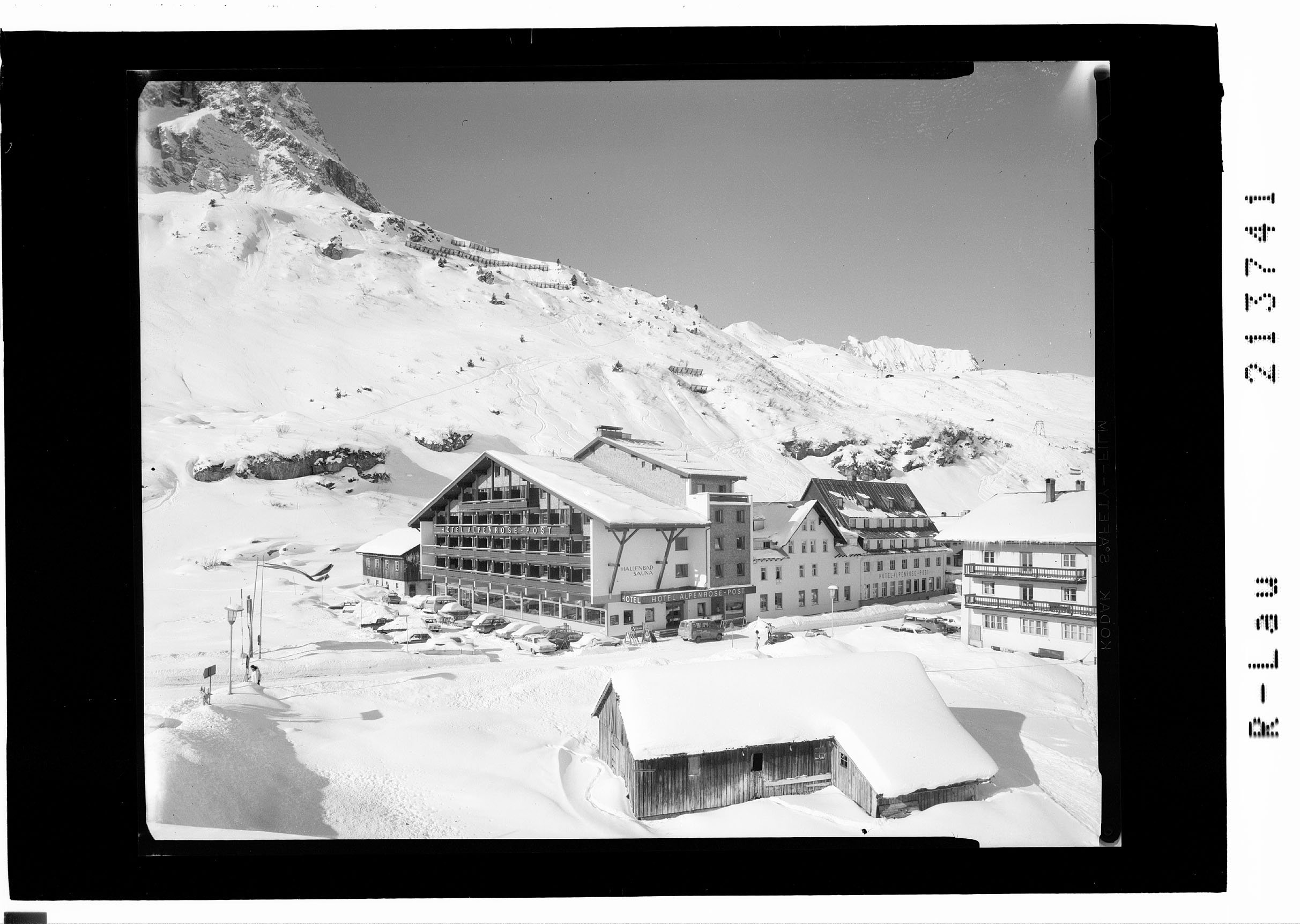 [Hotel Alpenrose in Zürs am Arlberg mit Mittagspitze und Omeshorn]