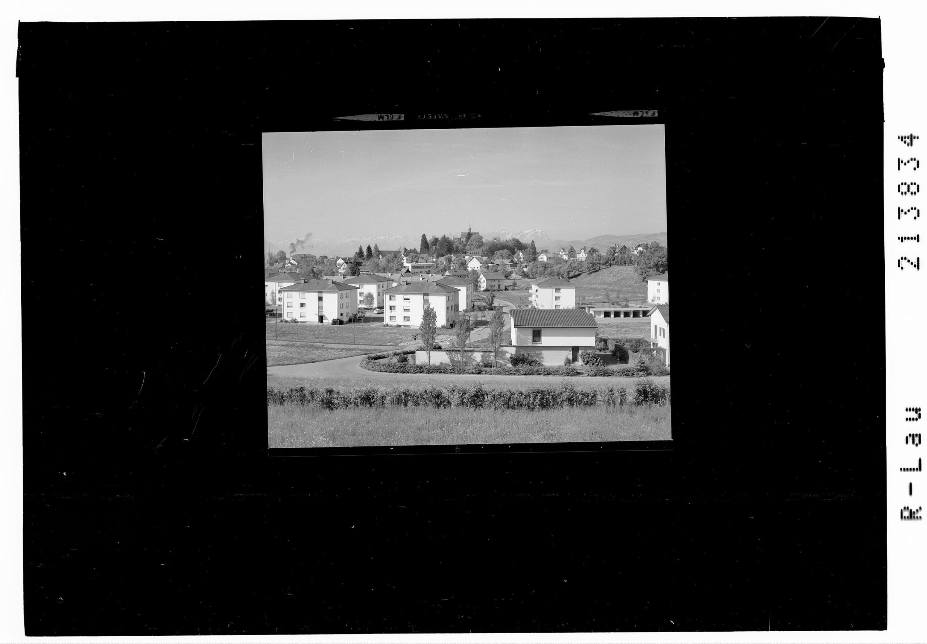 [Feldmoos Siedlung in Bregenz mit Riedenburg und Säntis]