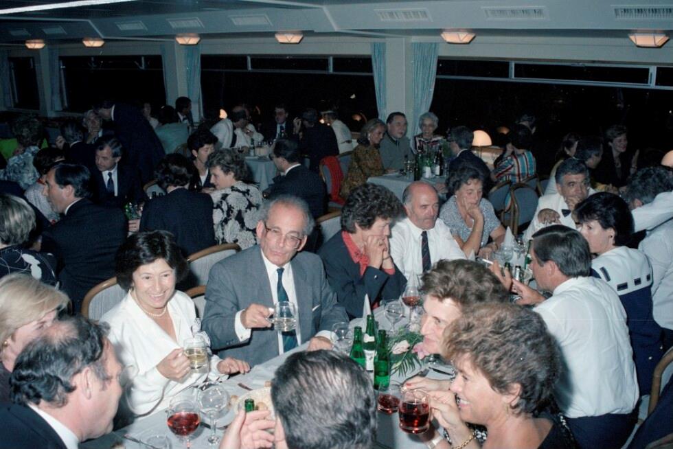 • o:191113: linke Tischreihe v.l.n.r.: unbekannt, Hilde Hawlicek, Kurt Waldheim, Gretl Purtscher, Josef Riegler, unbekannt; rechte Tischreihe: 3.v.l.: Martin Purtscher