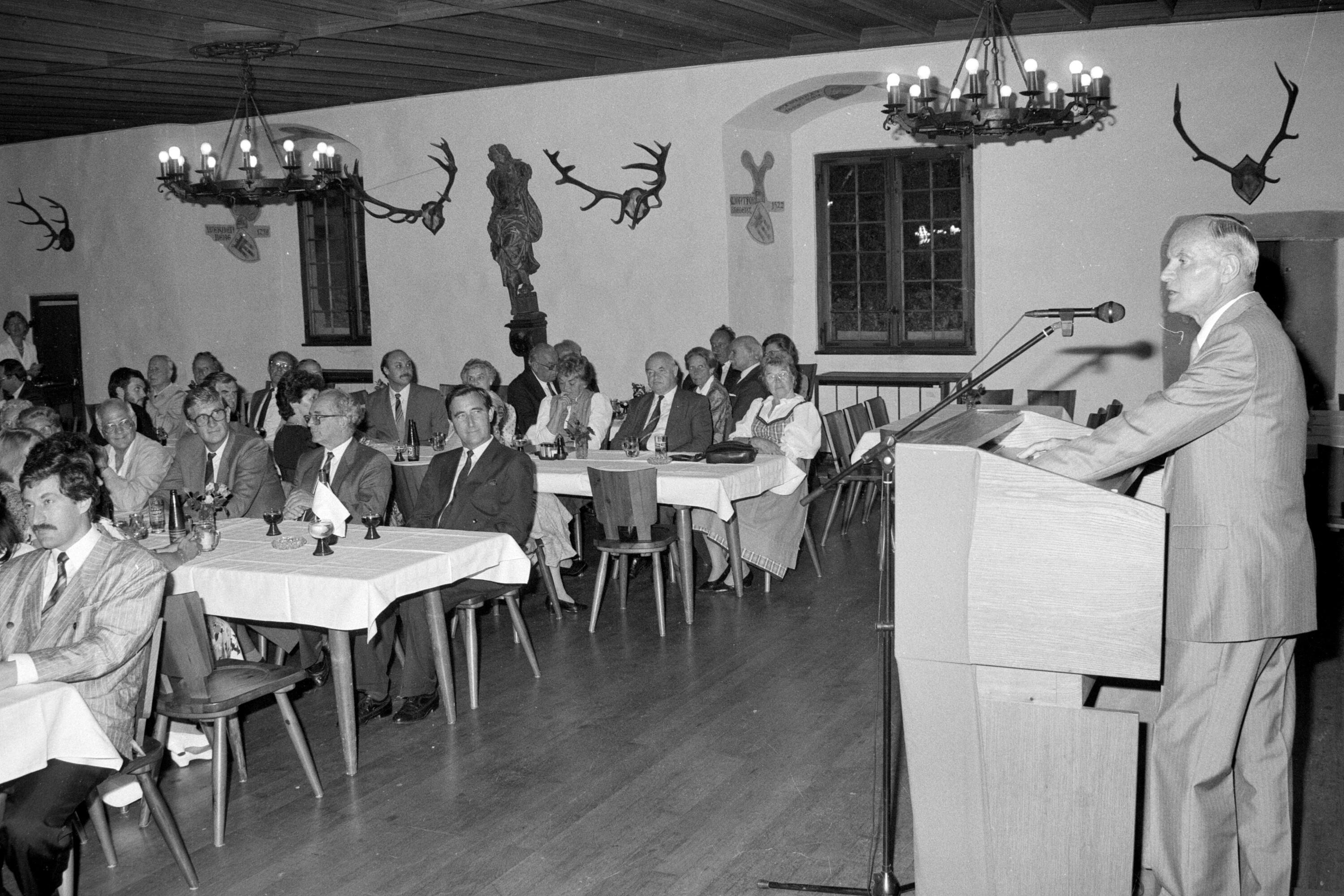 • o:191225: vorderster Tisch v.l.n.r.: unbekannt, Heinz Bilz, Herbert Keßler, Martin Purtscher; am Rednerpult: Werner Kresser