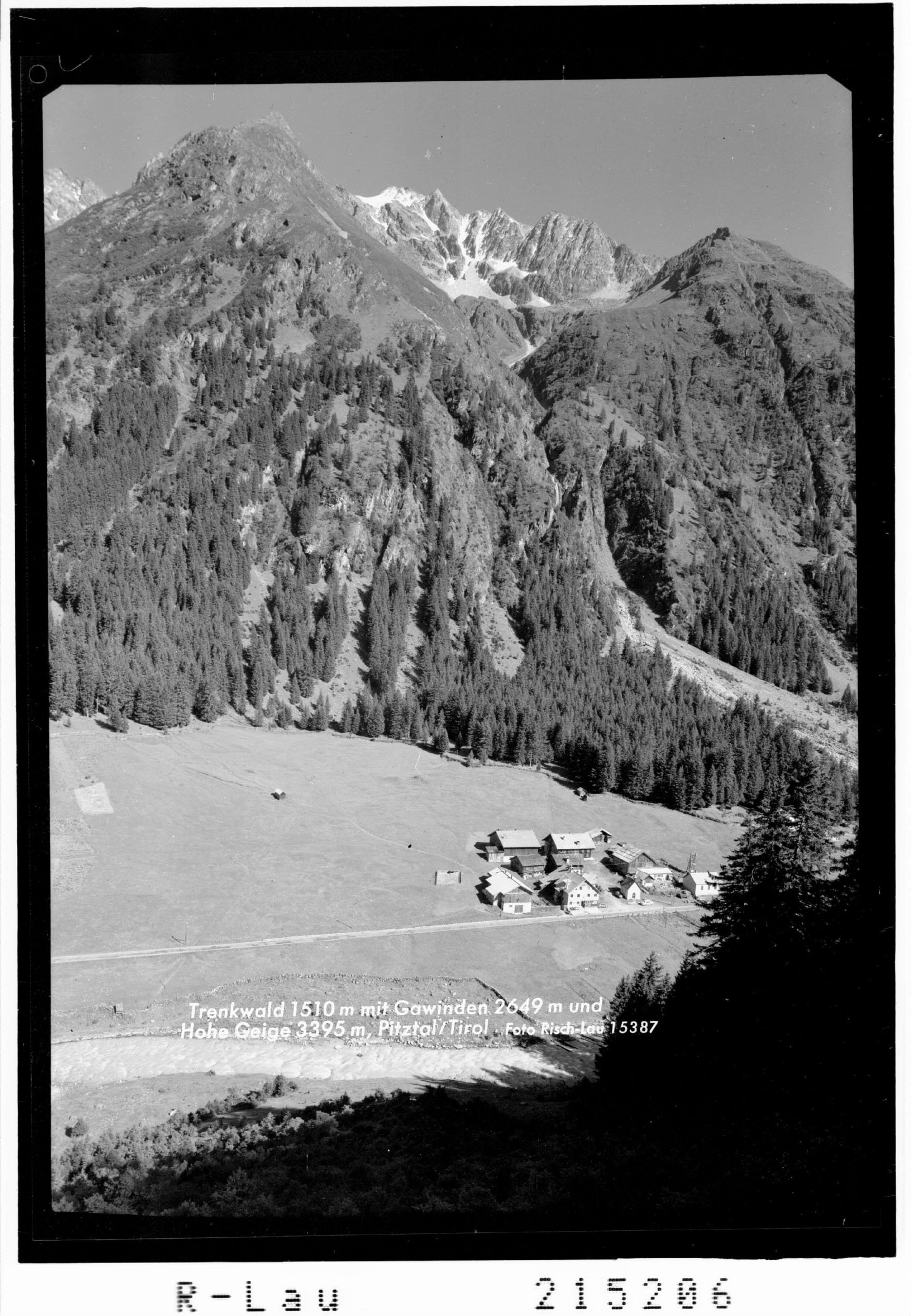 Trenkwald 1510 m mit Gawinden 2649 und Hohe Geige 3395 m, Pitztal / Tirol