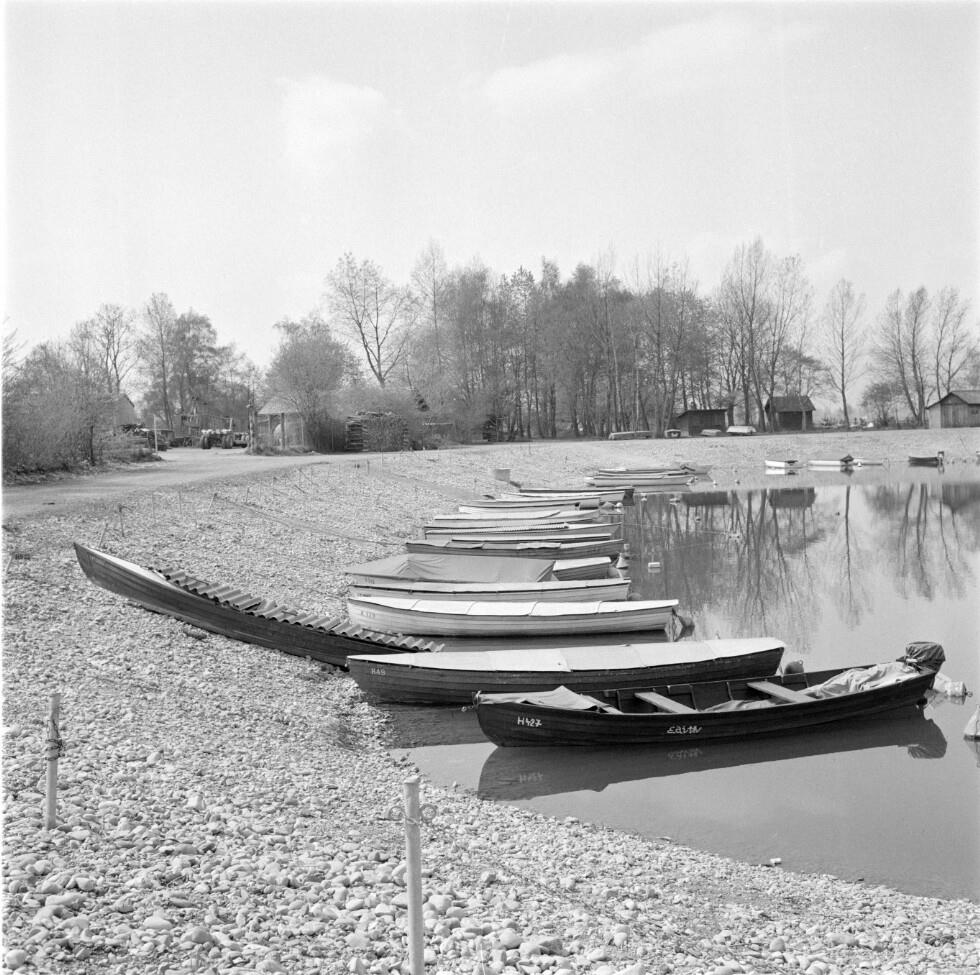 [Harder Bodenseeufer mit Booten und Kirche St. Sebastian]
