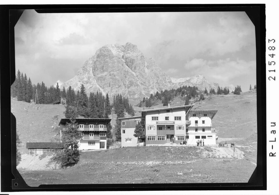 [Sporthotel Körbersee am Tannberg mit Blick zum Widderstein]