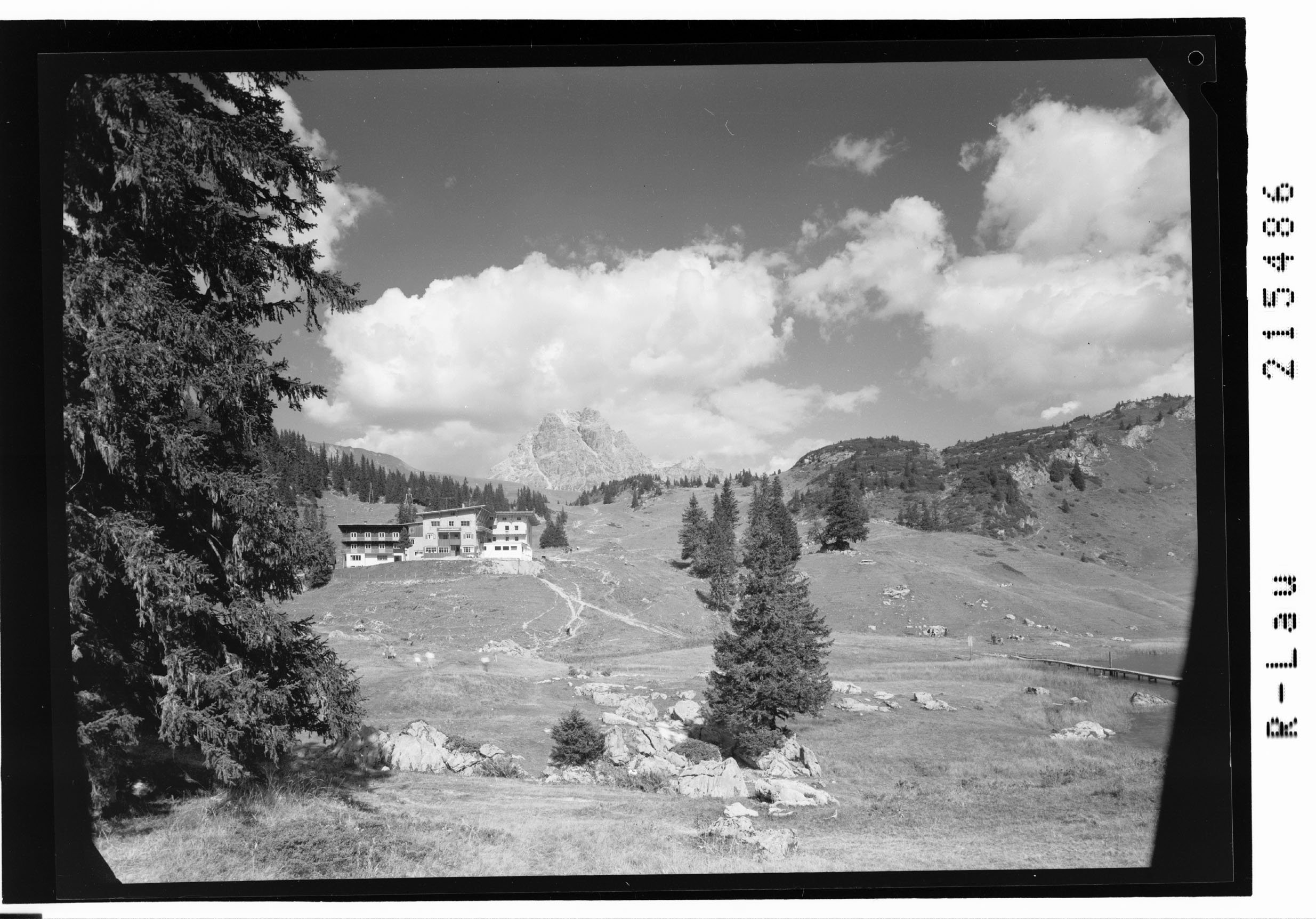 [Körbersee am Tannberg mit Sporthotel Körbersee gegen Widderstein]