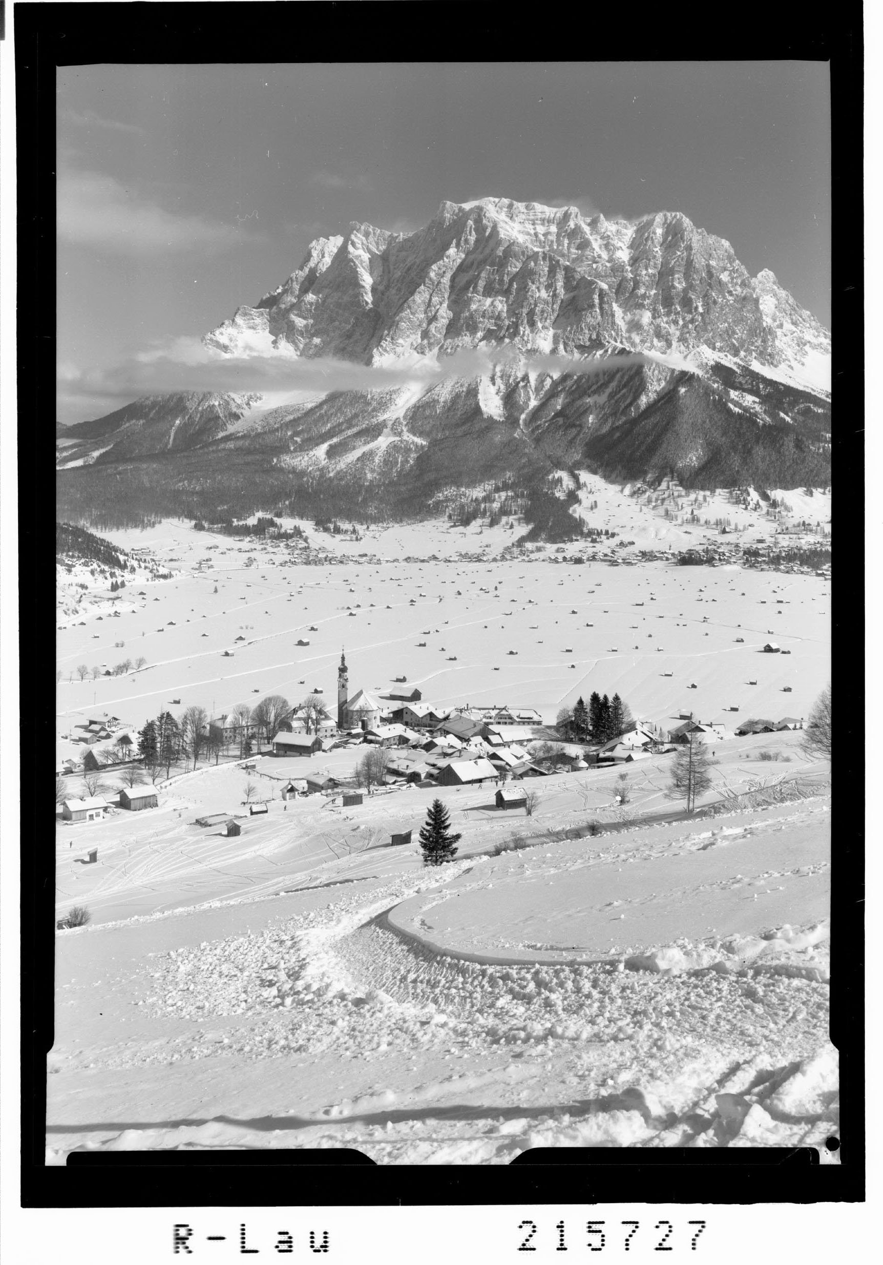 Lermoos 1000 m in Tirol gegen Ehrwald und Zugspitze 2963 m