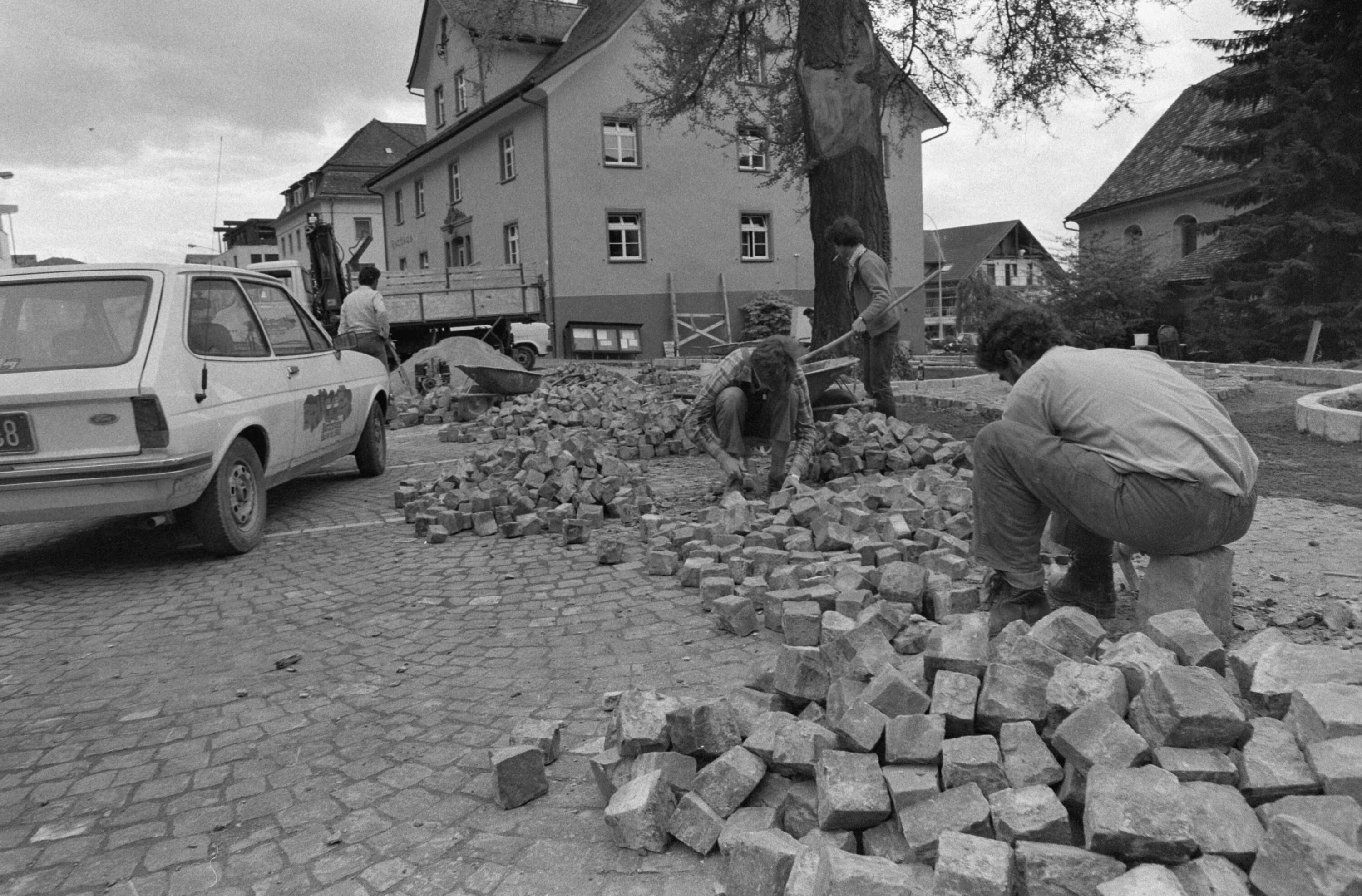 [Hohenems, Rathaus, Pflasterung des Vorplatzes]