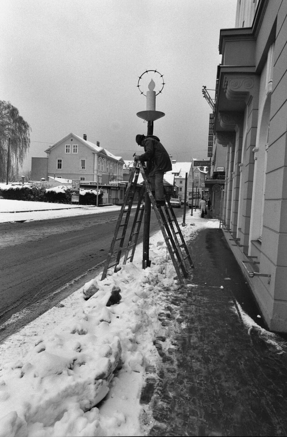 [Montage der Weihnachtsbeleuchtung in der Bahnhofstraße]